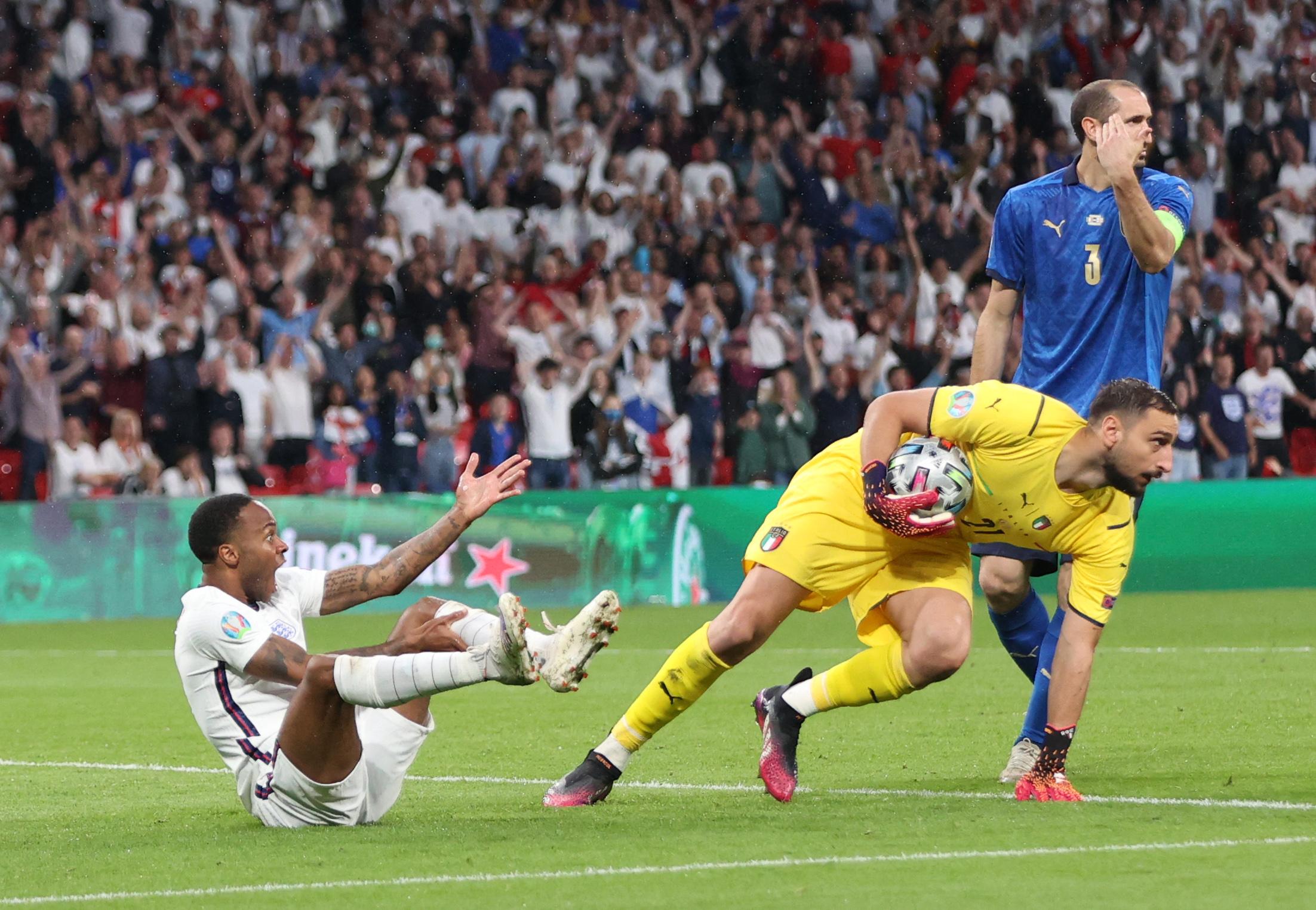 双方在经历加时苦战后,比分仍是1-1,只能进入残酷的点球大战——贝洛蒂的点球被皮克福德扑出,拉什福德的点球击中门柱,桑乔的点球被唐纳鲁马扑出,若日尼奥的点球也被皮克福德没收,最后出场的萨卡也罚丢点球,意大利队就此拿下欧洲杯冠军!
