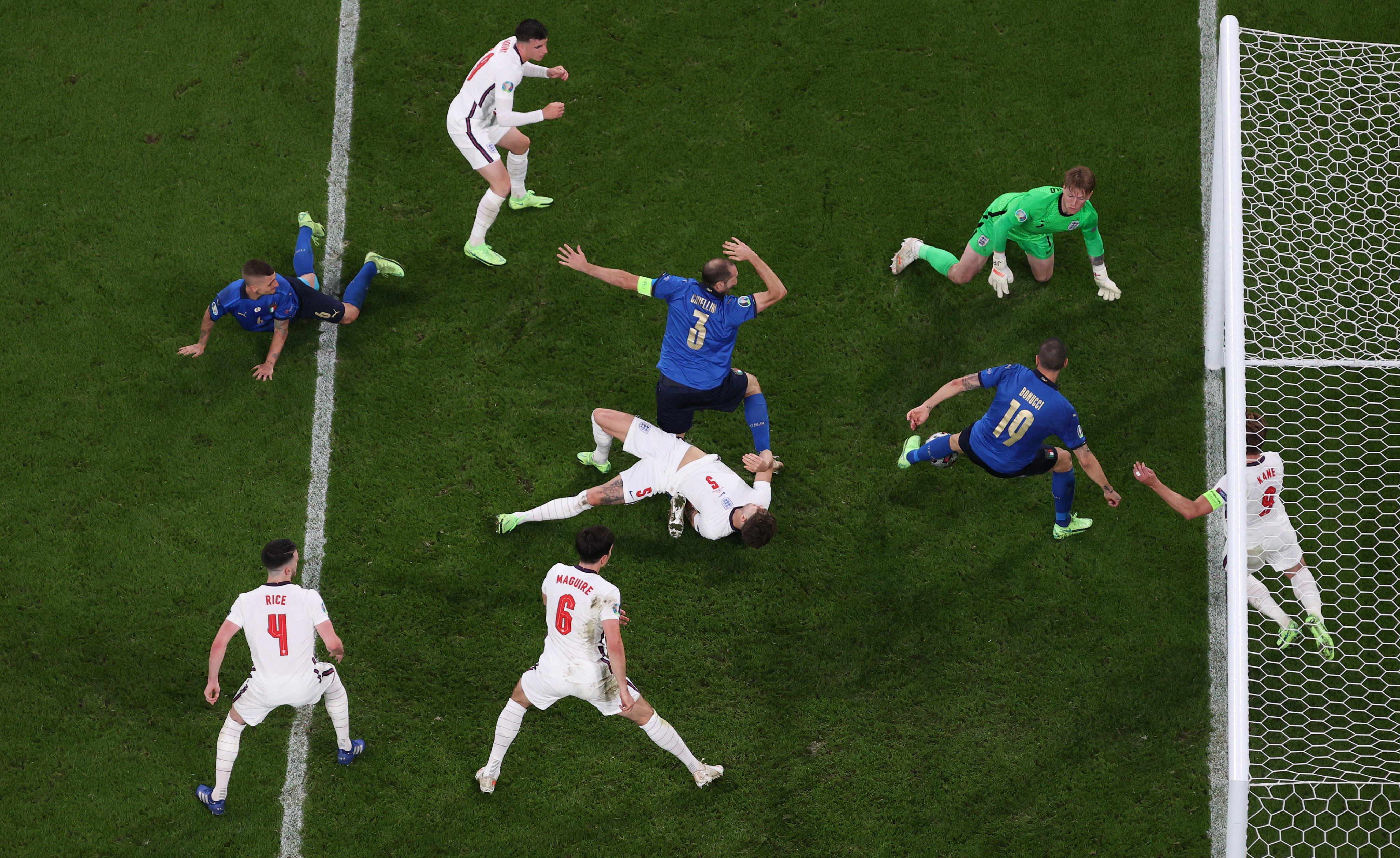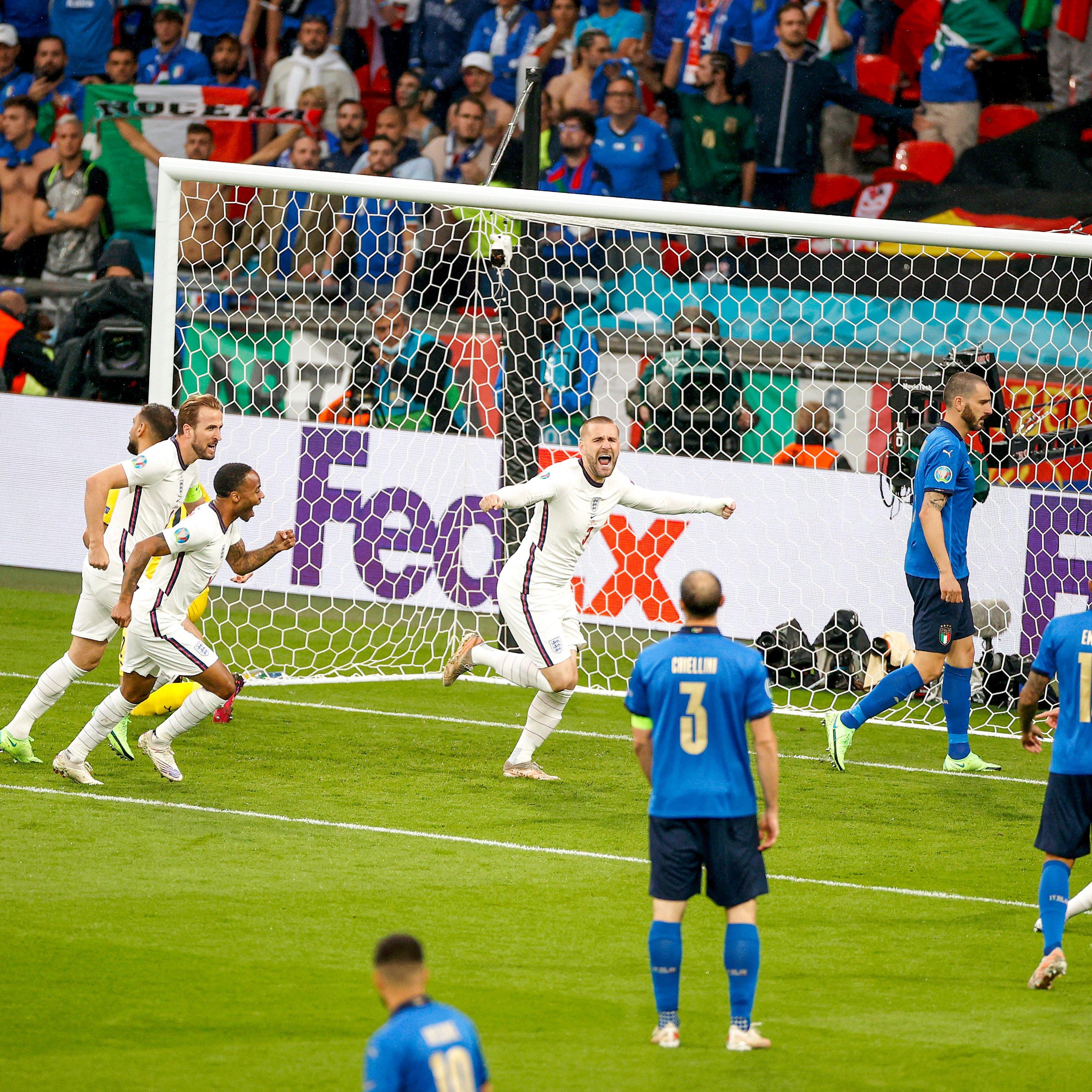 7月12日凌晨,欧洲杯决战上演——英格兰队开场1分57秒凭借卢克·肖的进球领先,下半场博努奇角球破门帮助意大利扳平比分。