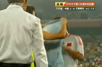 2009年国足3-1巴勒斯坦,杨智染红球队用完换人名额,郜林自告奋勇↓