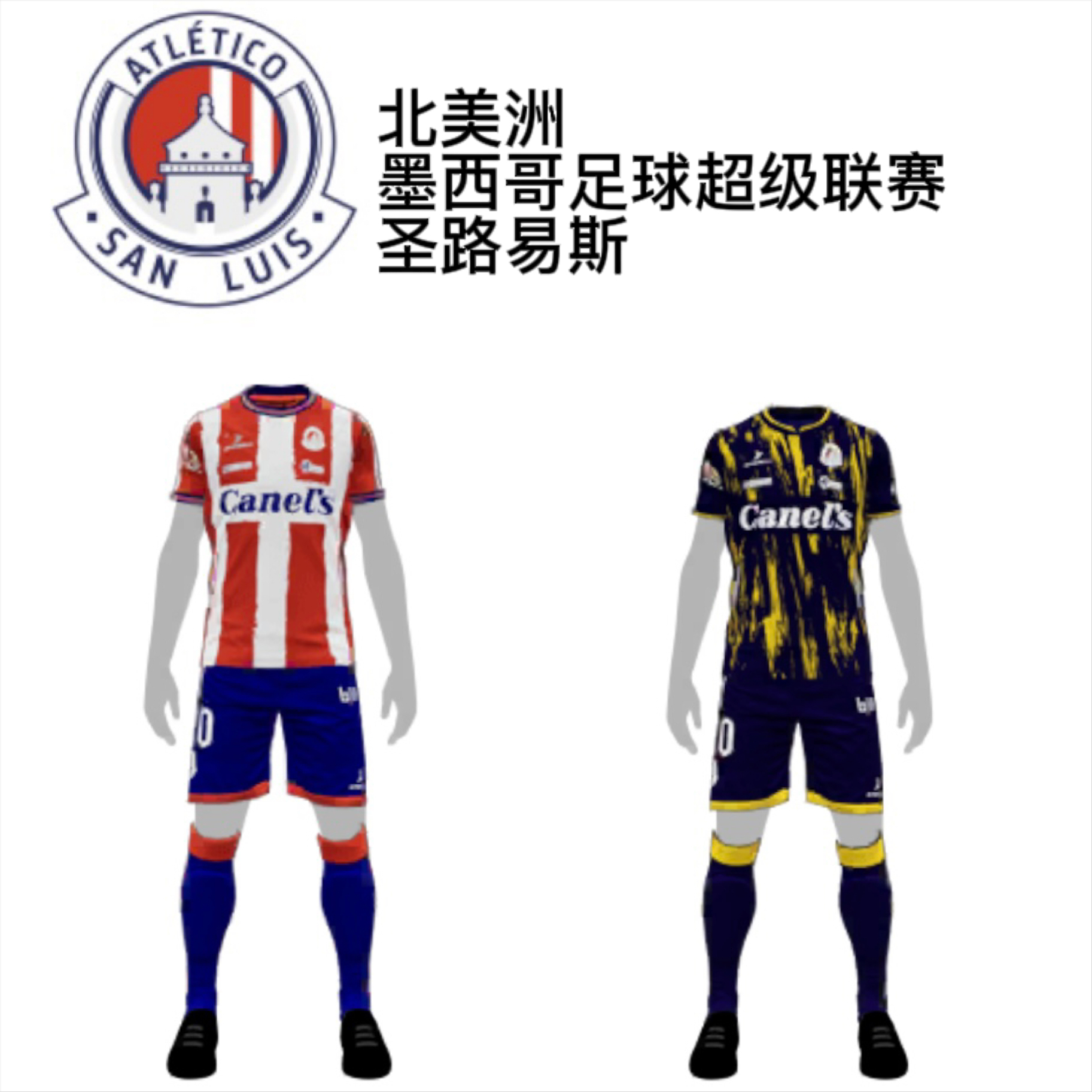 北美洲—墨西哥足球超级联赛—圣路易斯队徽标志中规中矩,主场球衣十分贴近西甲马竞,客场球衣乍一看有点像德甲多特蒙德,比赛中能切换两家知名俱乐部,这感觉还是不错的。
