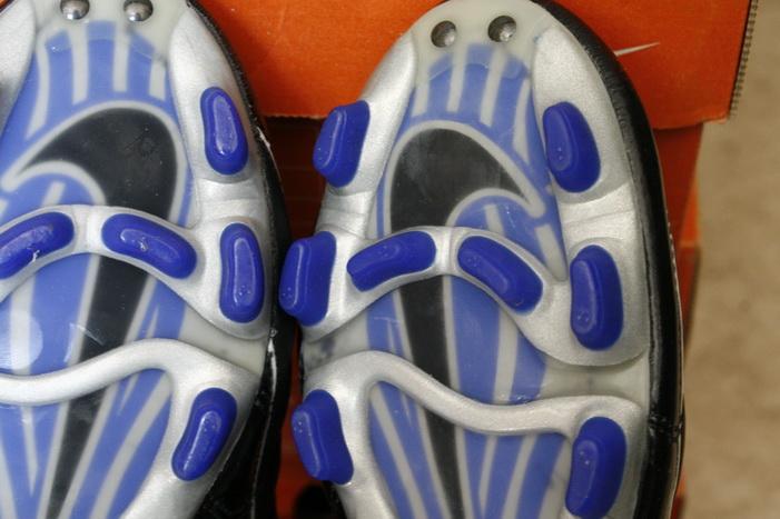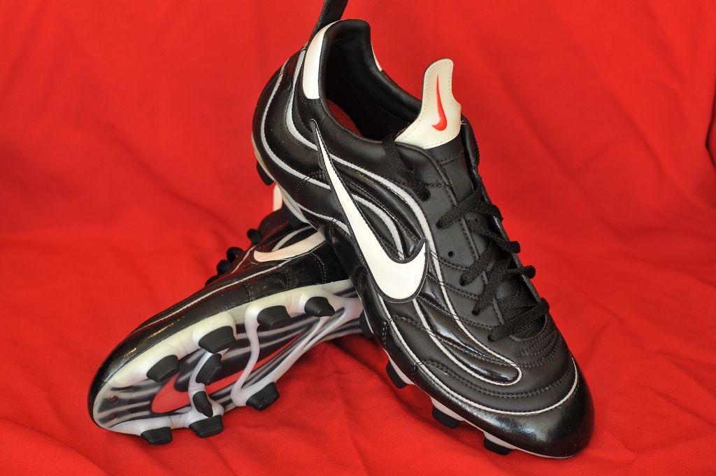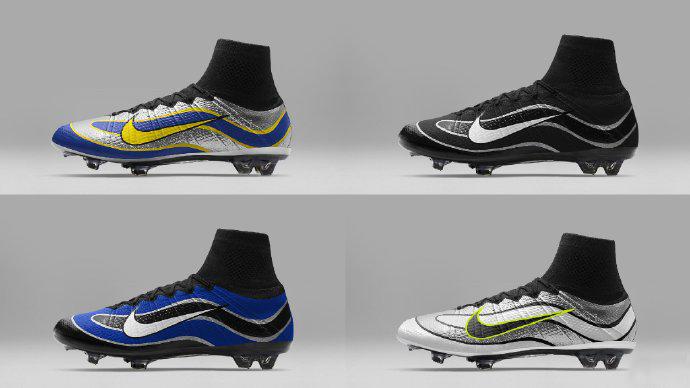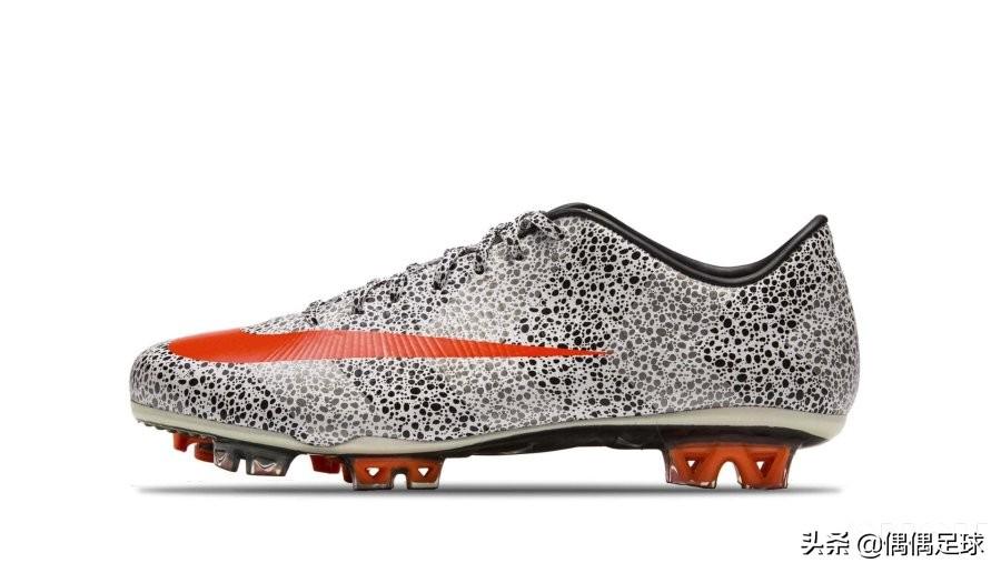 在1998年世界杯前夕,足球鞋还处于冷兵器时代,所有的足球鞋基本千篇一律使用袋鼠皮材质,并搭配传统的圆钉鞋底,但adidas作为足球鞋领域的领导者,早早破了先例,首创了猎鹰系列和奇钉鞋底。而野心勃勃的nike却显得十分低调,完美诠释了明修栈道暗度陈仓的典故。世界杯前夕,nike突然发布了一款全新的足球鞋,定名为mercurial 水星。这款全新的足球鞋,采用日本teijin帝人公司的合成纤维材料kng100,并使用了全新的刀钉鞋底。在外形上,完全突破了传统足球鞋的设计,采用更为流线的鞋身设计,并去除了传统足球鞋的大方鞋舌。虽然配色依旧是传统的黑白配色,但这个产品立刻震动的足球鞋领域,可以说开创了超纤足球鞋的先河。