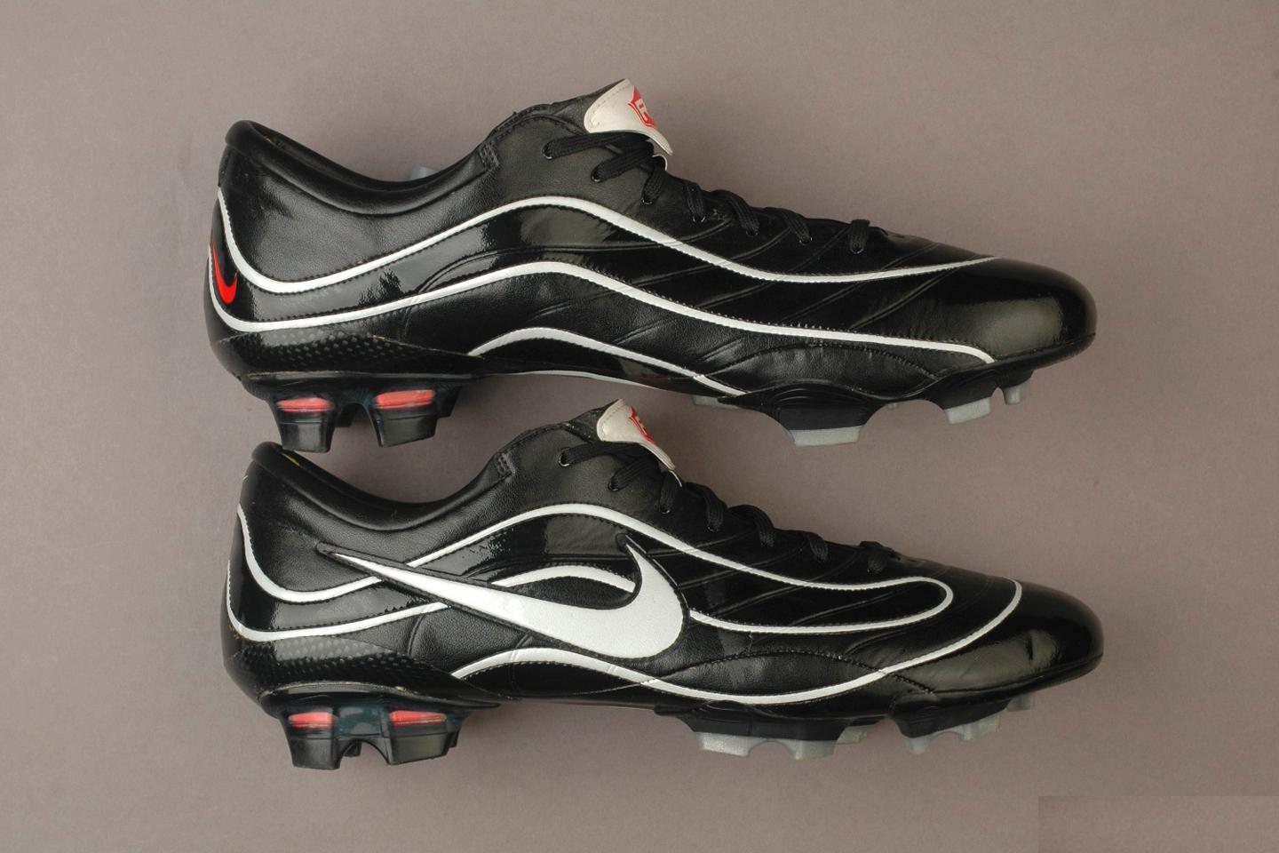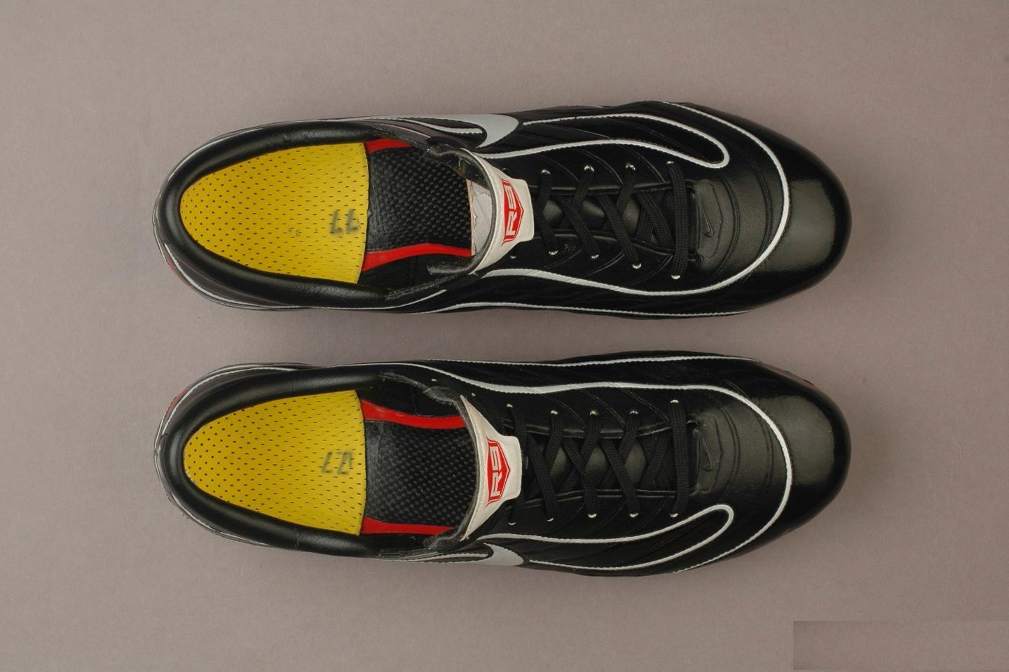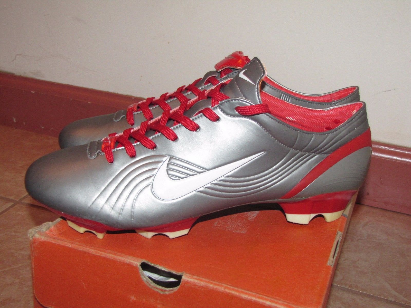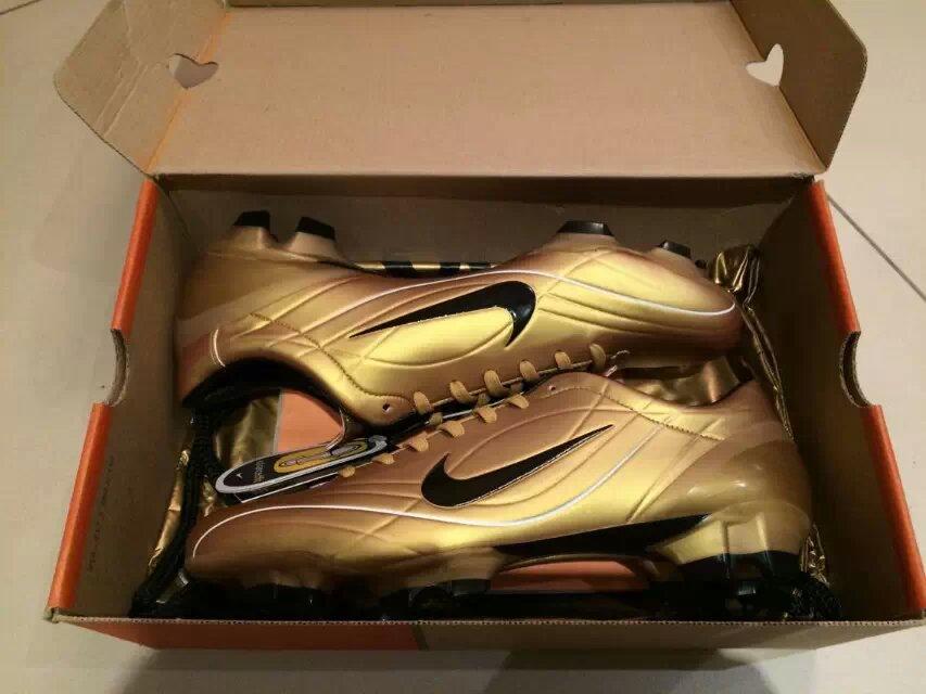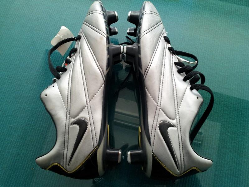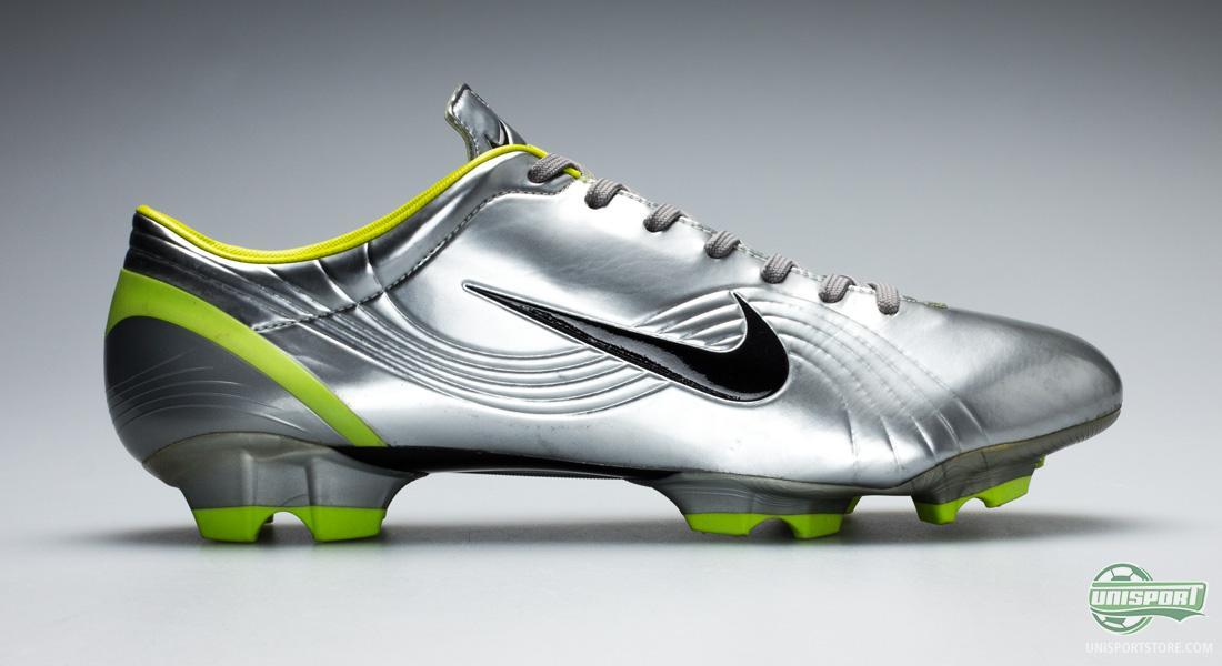 2000年,水星系列发布了第二款全新的足球鞋,match mercurial,这款鞋采用了全新的鞋底,让鞋子的启动力有了新的提高,鞋舌采用彻底的短舌设计以减轻重量。配色还是相对低调,以黑色为主。无奈大罗因为膝盖的伤情,长期休战。Nike 为其推出的银色r9专属match mercuiral,他只能在养伤期间穿着参加慈善赛。而2001年底复出后罗纳尔多的故事大家都知道,国际米兰在联赛遥遥领先的情况下,最后丢了冠军?还排名第三……这事是不是应该怪穿着古铜色战靴的罗纳尔多,是不是换个金色的就好了。Nike也真是够绝的,有银有铜就是没有金,难怪冠军旁落了。