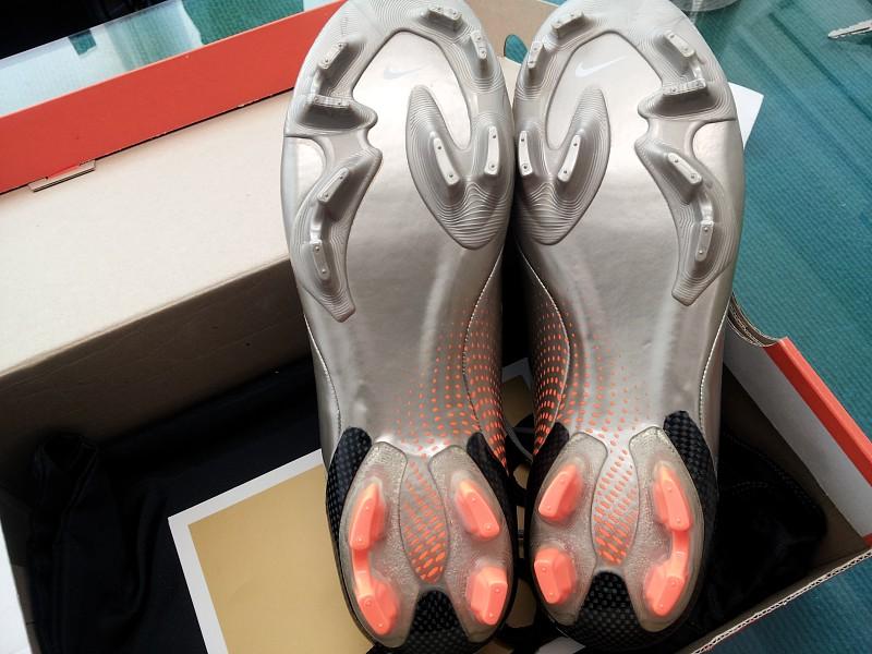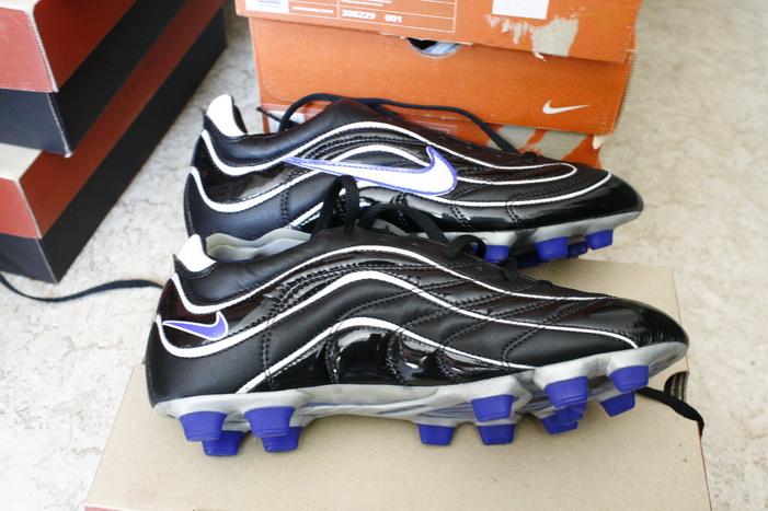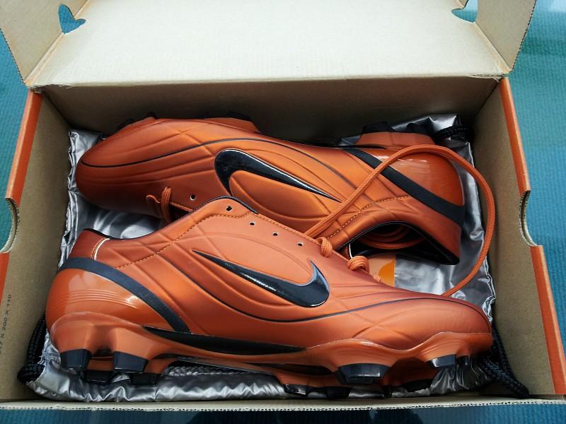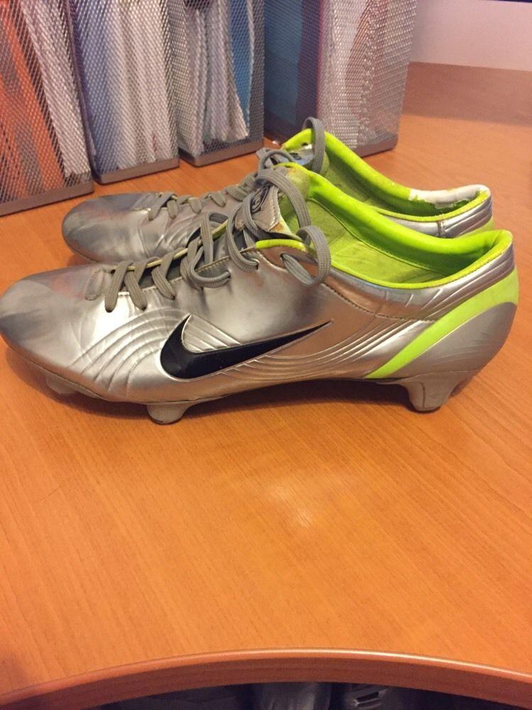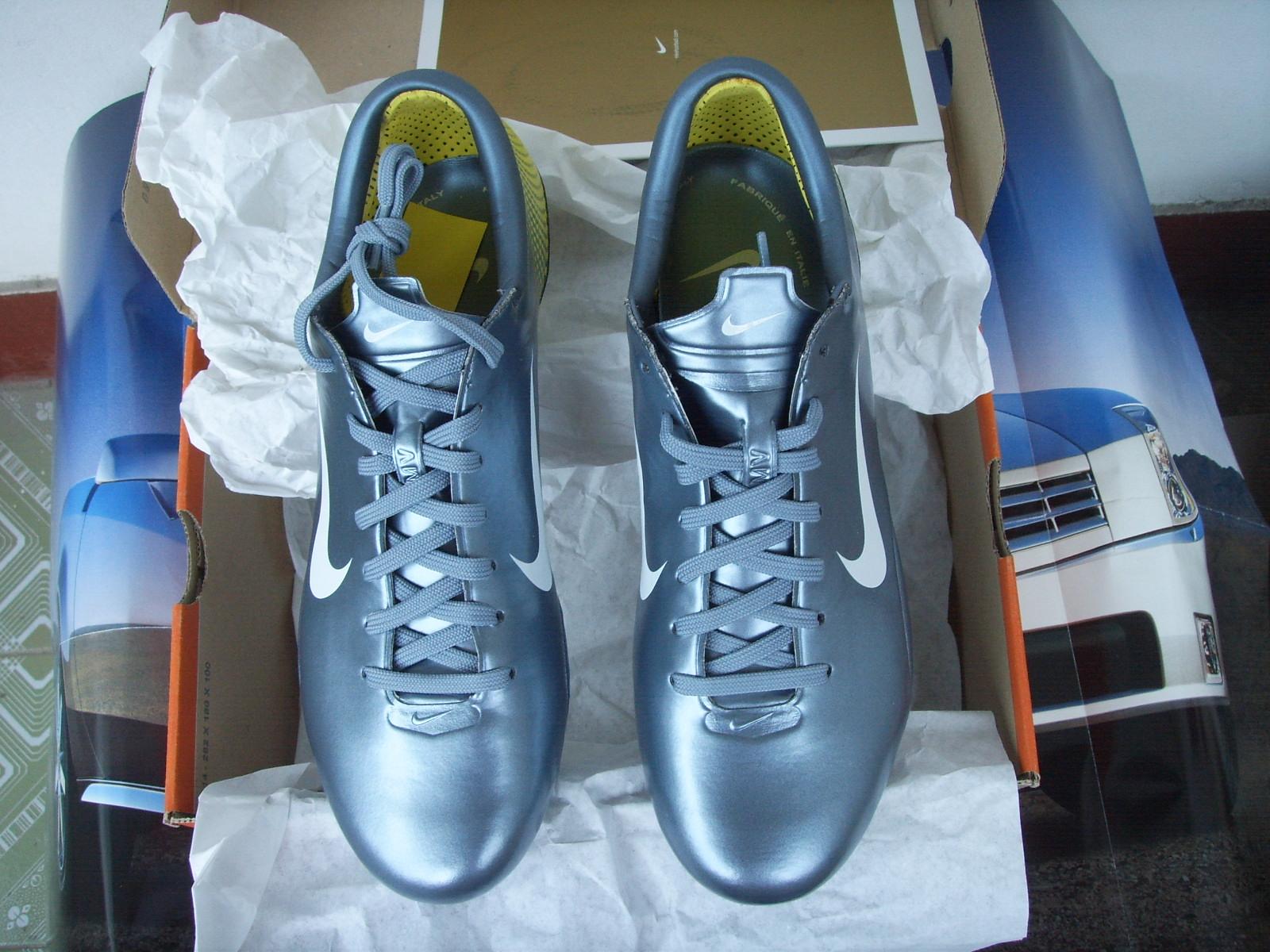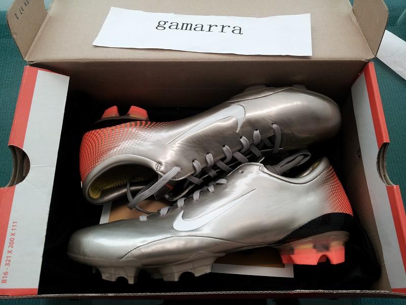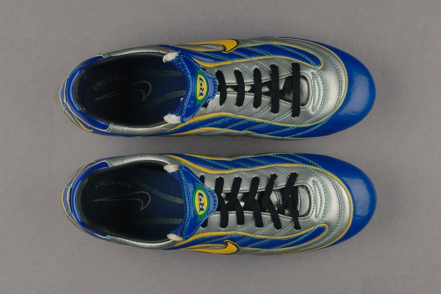 2000年,水星系列发布了第二款全新的足球鞋,match mercurial,这款鞋采用了全新的鞋底,让鞋子的启动力有了新的提高,鞋舌采用彻底的短舌设计以减轻重量。配色还是相对低调,以黑色为主。无奈大罗因为膝盖的伤情,长期休战。Nike 为其推出的银色r9专属match mercuiral,他只能在养伤期间穿着参加慈善赛。而2001年底复出后罗纳尔多的故事大家都知道,国际米兰在联赛遥遥领先的情况下,最后丢了冠军?还排名第三……这事是不是应该怪穿着古铜色战靴的罗纳尔多,是不是换个金色的就好了。Nike也真是够绝的,有银有铜就是没有金,难怪冠军旁落了。
