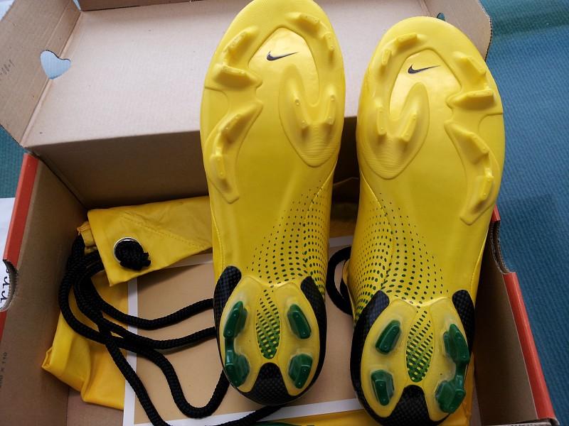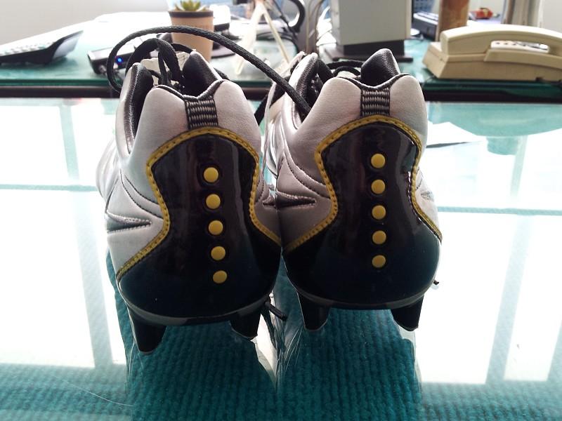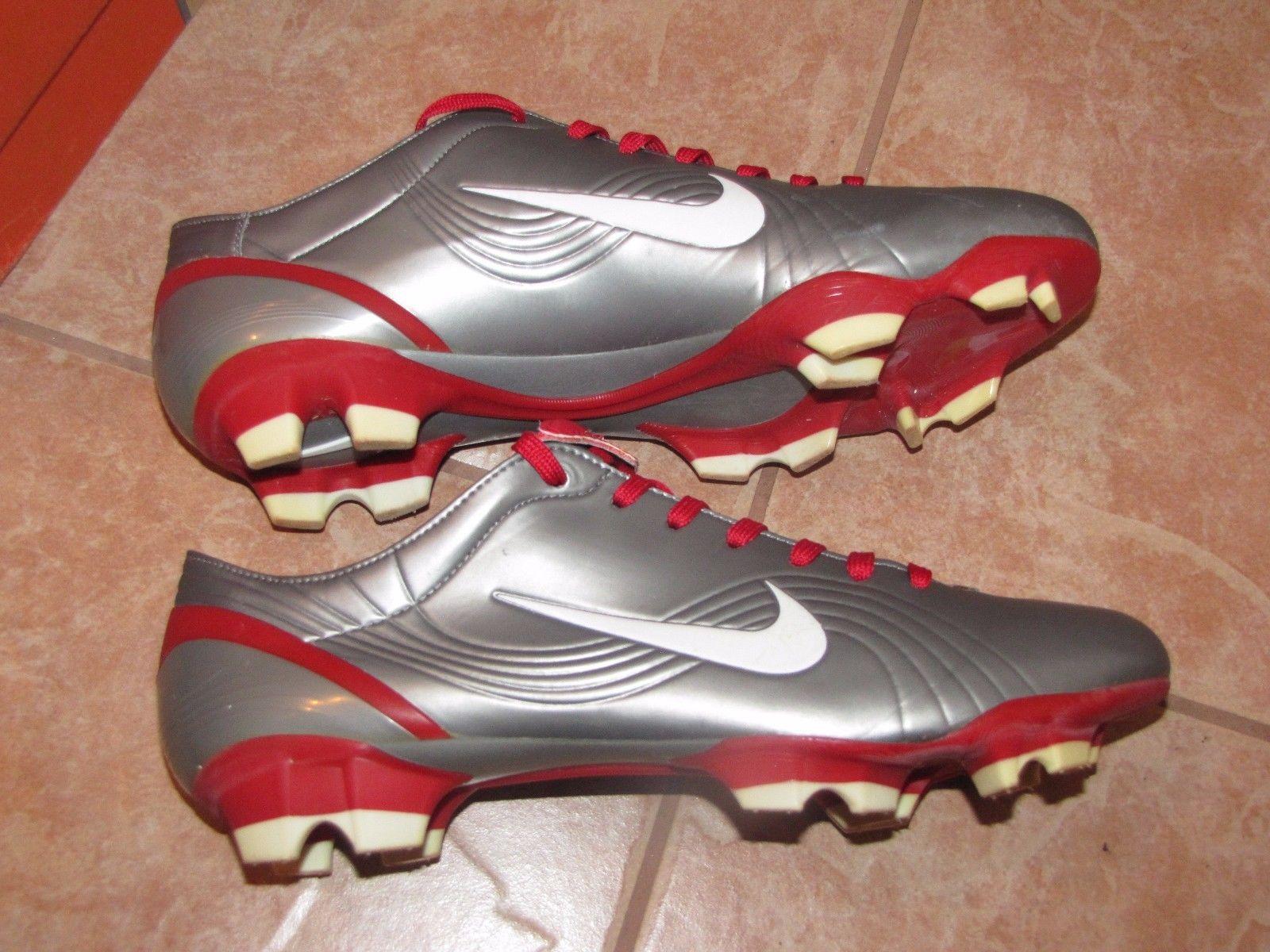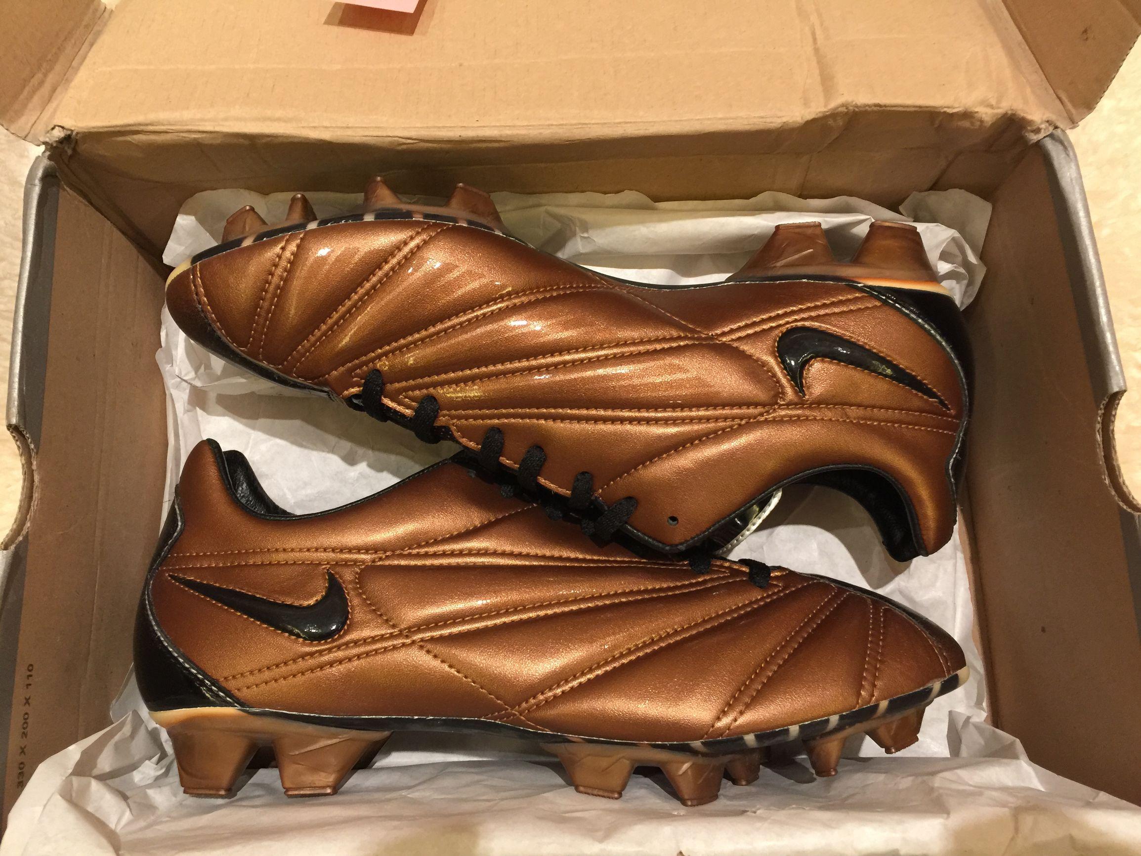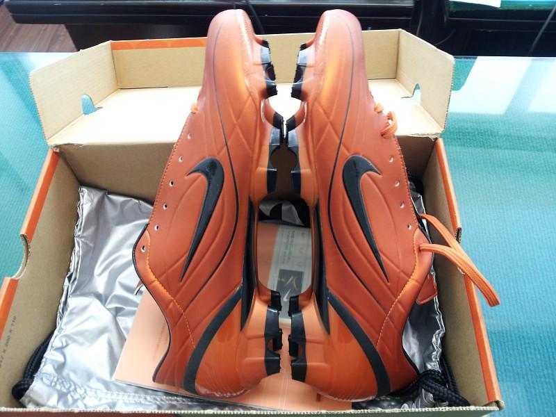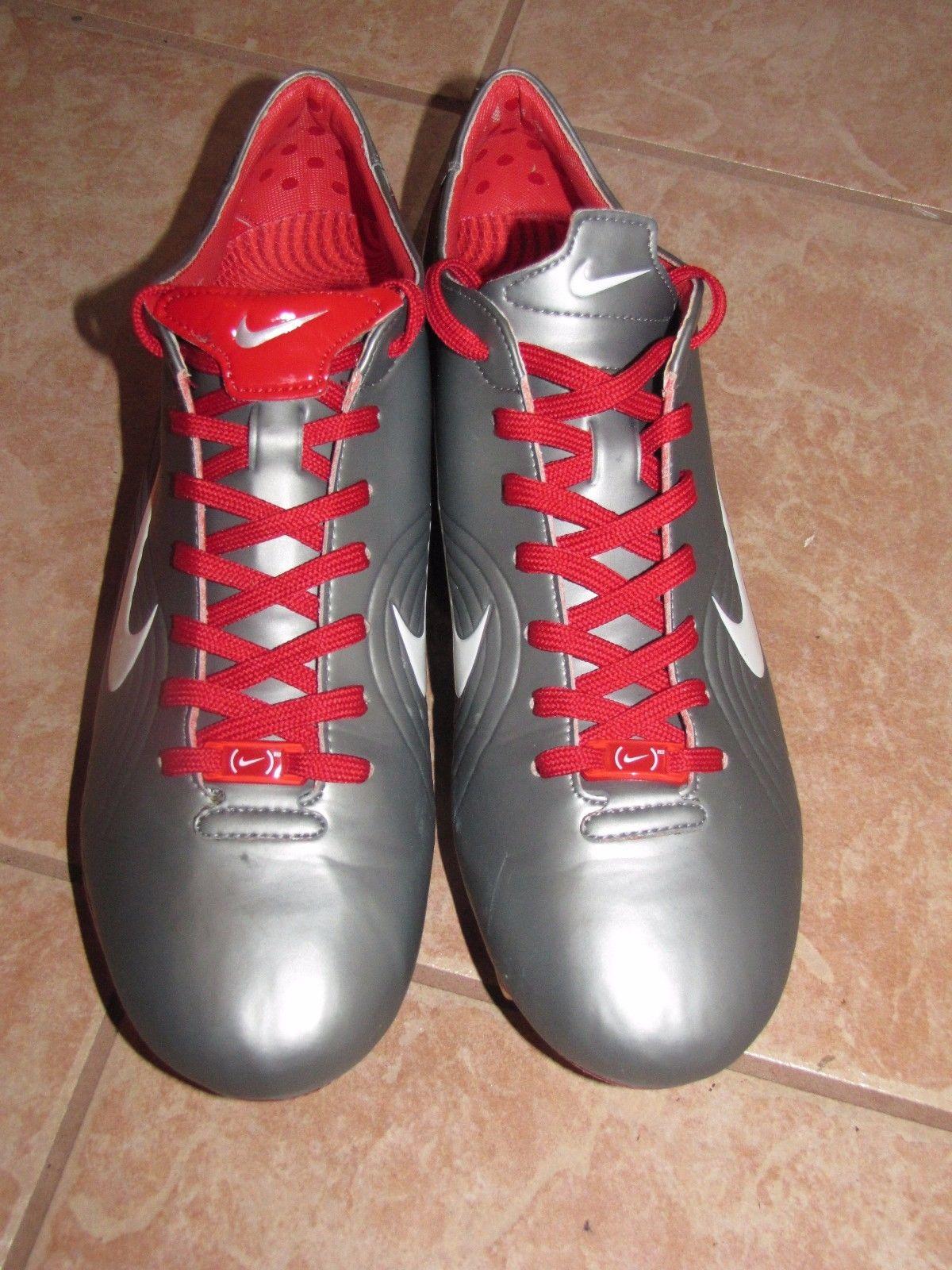 2000年,水星系列发布了第二款全新的足球鞋,match mercurial,这款鞋采用了全新的鞋底,让鞋子的启动力有了新的提高,鞋舌采用彻底的短舌设计以减轻重量。配色还是相对低调,以黑色为主。无奈大罗因为膝盖的伤情,长期休战。Nike 为其推出的银色r9专属match mercuiral,他只能在养伤期间穿着参加慈善赛。而2001年底复出后罗纳尔多的故事大家都知道,国际米兰在联赛遥遥领先的情况下,最后丢了冠军?还排名第三……这事是不是应该怪穿着古铜色战靴的罗纳尔多,是不是换个金色的就好了。Nike也真是够绝的,有银有铜就是没有金,难怪冠军旁落了。