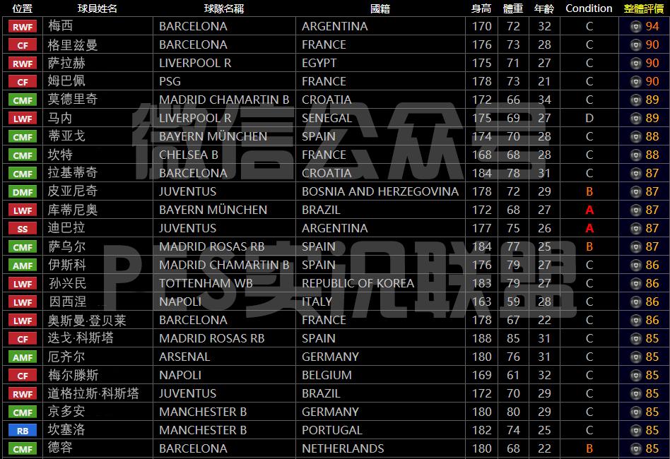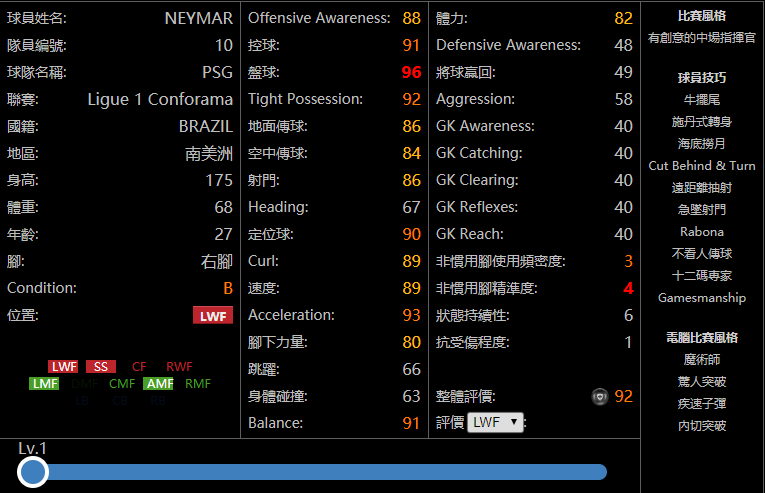 为啥名单中没有内马尔呢?因为他没有自带这个技能……其他球员同理……