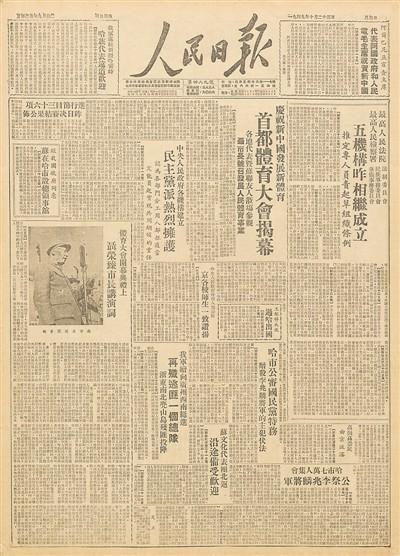 一九四九年十月二十三日的人民日报头版。 资料图片
