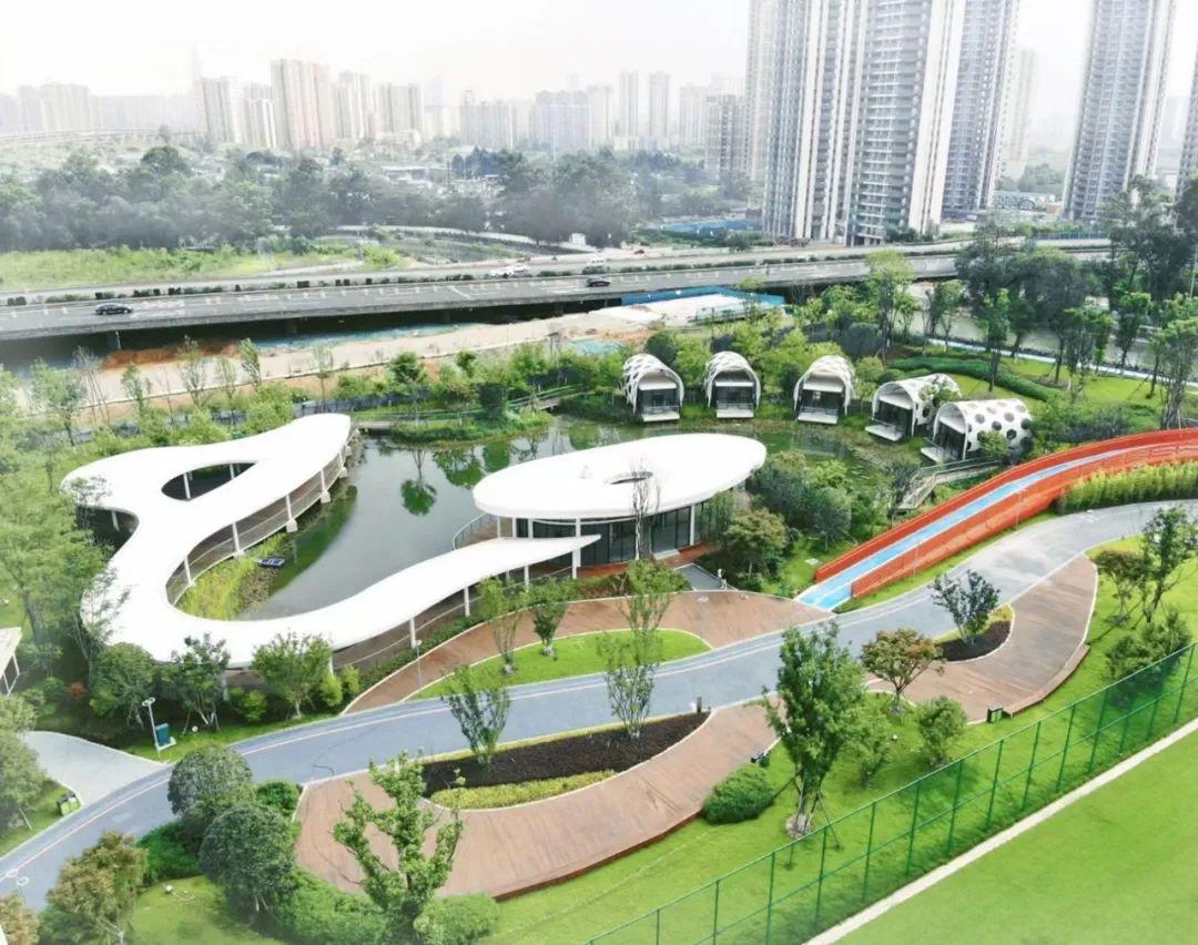 产园融合新场景 : 公园内配套空间、训练场地、绿地作为产业载体,植入足球培训及文创、展演产业内容,在满足公园休闲功能基础上,营造多元新兴体验型消费场景,探索公园城市生态价值转换。