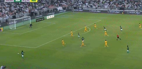 第61分钟,沙特左路传递,萨米禁区内接球被杰戈放倒,主裁判判罚点球。达萨里操刀主罚点球,面对马修-瑞恩,一脚冷静推射,骗过门将打入右侧网窝,沙特取得领先,1-0!↓