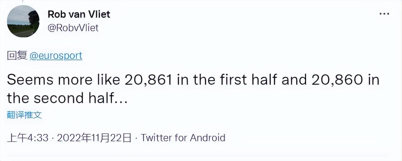 有球迷吐槽:或许算法是这样的——这场比赛的上半场有20861名观众,下半场有20860名观众,所以说有41721名观众。