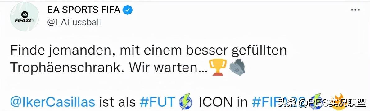 近日,EA又通过其官方账号公布了新作FIFA22中的新传奇,四人名单目前仅公布了3人,分别是卡西利亚斯、卡福和范佩西。