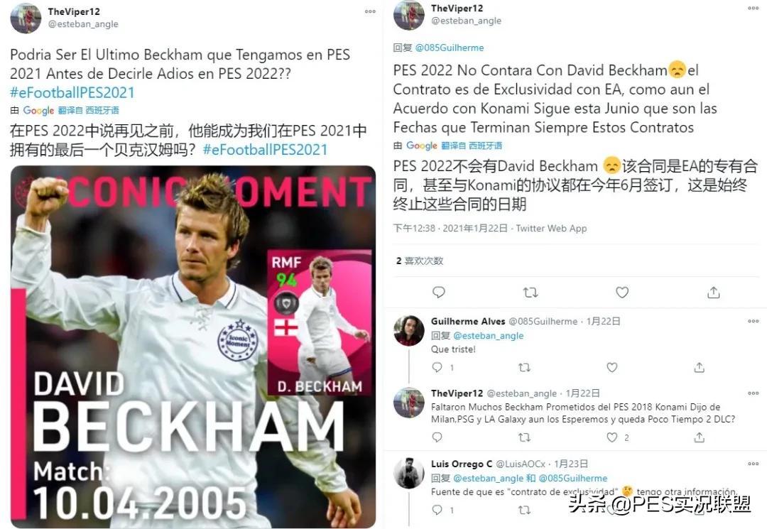 传言分析:从去年年底到今年年初,实况圈儿最热门的话题就是小贝的删卡风波,而这起事件的起因是一位深耕实况足球领域多年的国外大神,在推特上回复网友提问时提到贝克汉姆与EA签订的是“专有合同”,故而22赛季中小贝将会面临删卡。