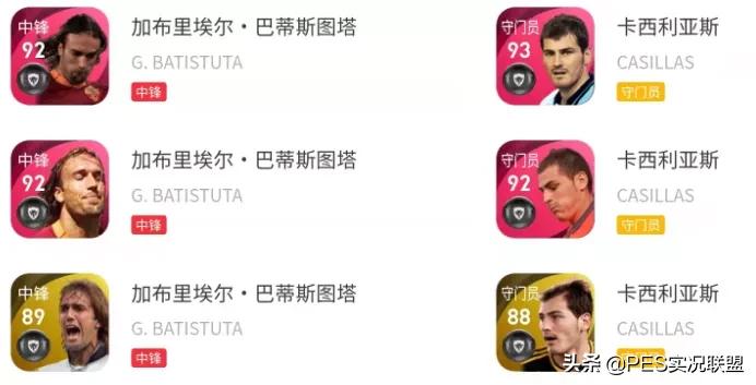 1.巴蒂斯图塔是实况足球19赛季DP3.0数据库的新增传奇,卡西利亚斯是20赛季DP5.0数据库的新增传奇,二者在实况足球中上架的时间均不足三年,而科乐美签传奇很少只签一两年,基本上都是三年起步。