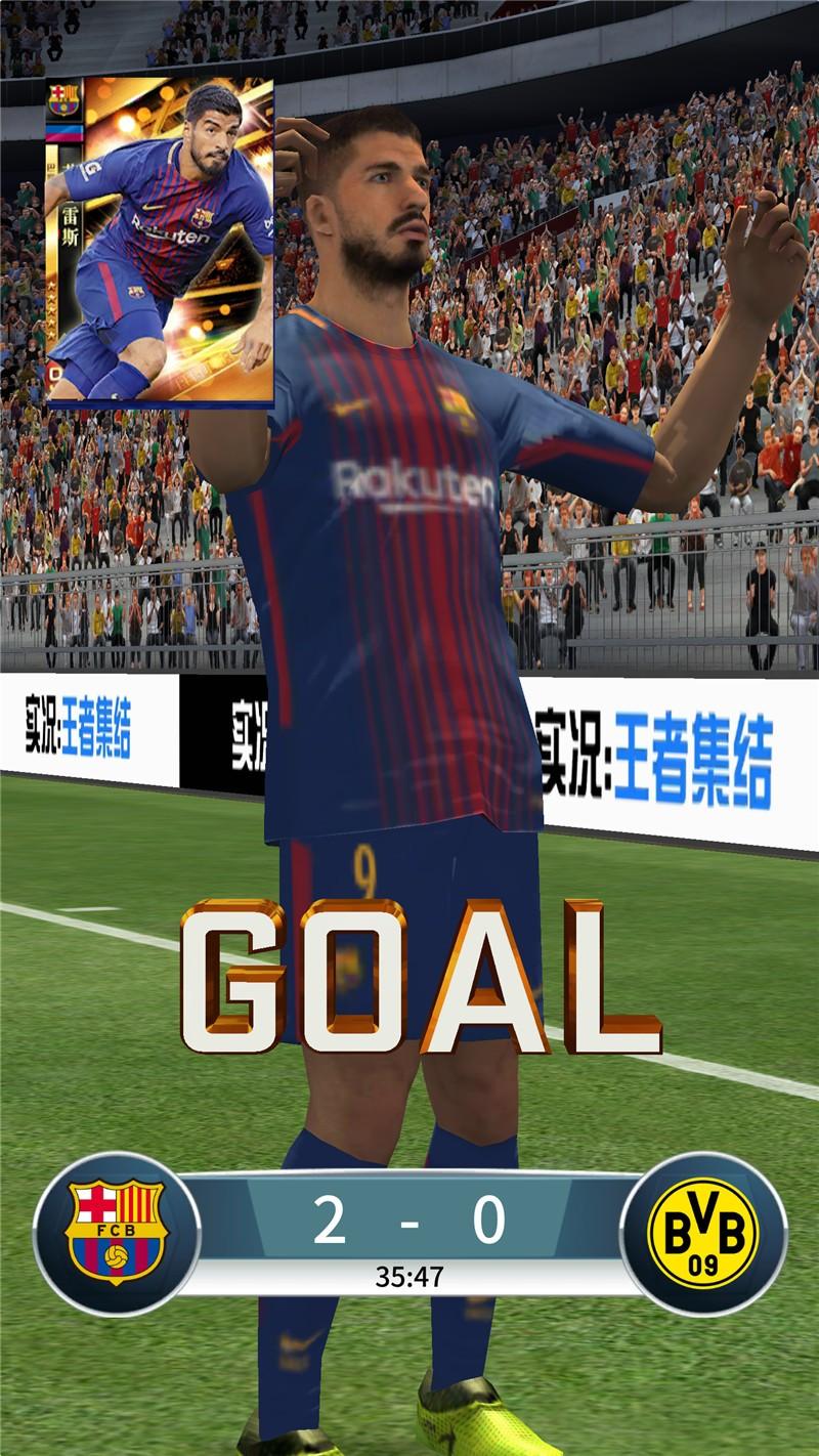 相较《实况俱乐部》,时隔三年的《王者集结》在实时演算的球赛画面表现上进步其实并不明显,但出球、盘带、射门都能做到行云流水,赛况流畅,偶尔也会看到花式进球的场景,给玩家带来惊喜。比较令人意外的是,本作对球员真实相貌还原的表现要好于《FIFA足球世界》,这方面本来是EA的强项。