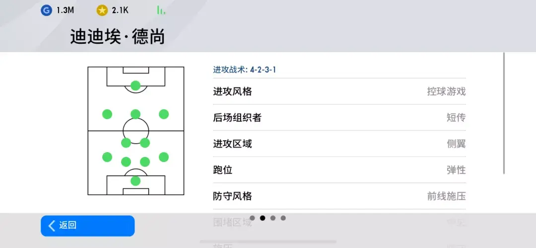 教练阵容选择上其实最适合的应该是4231,这样搭配起来各个位置都会有首发和替补,笔者最先就是用4231,打打AI还好,但是去打天梯时就有点力不从心了,主要是进攻方面打不上,常常在进攻时只有中锋和前腰两人,两个边卫也不算特别往前,得一直手动拉上去。