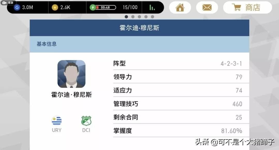 在国际服中,只有上场球员的教练熟练度才会得到增加,而在球队替补席上的球员则不会有变化。而据新引擎测试服体验者称,在新引擎中球队精神在95以下时,球员之间的配合经常出现失误,操控手感较差,因此提高球员熟练度显得尤为重要。但是我们会发现,一名球员在不同教练的阵容中熟练度是不同的,这是因为不同的教练球队战术不同,而球员对于各种战术的适应程度也不同,因此有时候你练得辛辛苦苦,换一个教练熟练度又只剩下30%、40%。那么有没有这样的教练,他的进攻与防守战术完全相反,只要在他的手下熟练度为100%,那么在其他教练的阵容中熟练度也会自动达到100% 呢?别着急,大猪蹄这就为你介绍这样的一位万能教练,他就是哥伦比亚甲级联赛中卡利体育的主教练佩鲁索(pelusso),游戏中名为霍尔迪▪穆尼斯 。