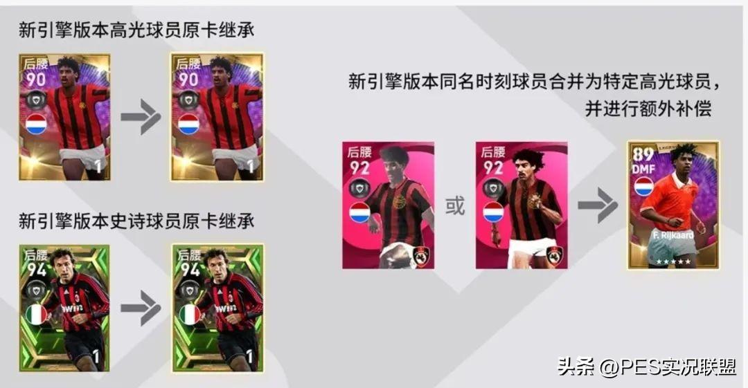 实况足球国服手游大更后的传奇球员虽然可以正常结转,但多版本时刻球员都将在新引擎版本继承为同一个特有版本的“高光球员”。