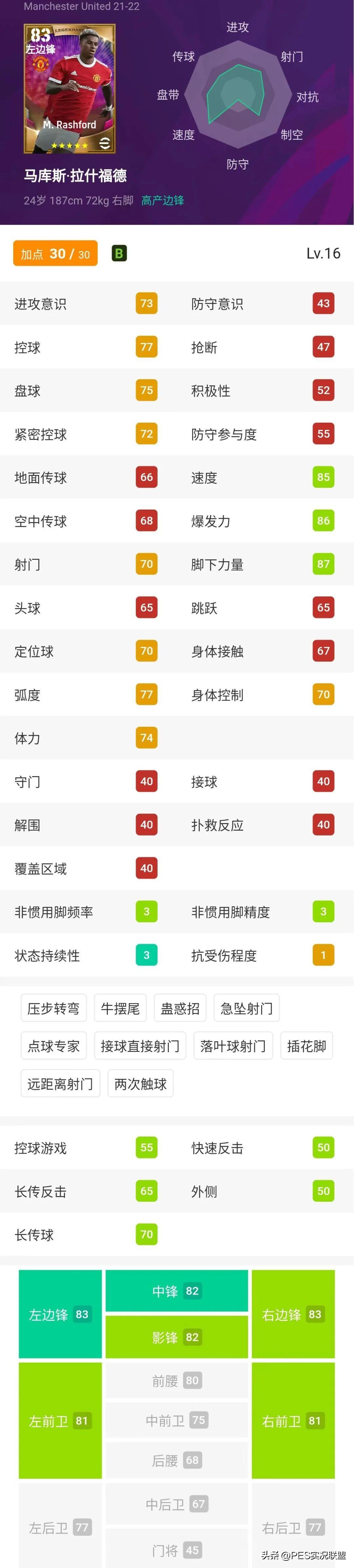 虽说83的传奇卡拉什福德有30个能力点可供自由分配,但要想达到101时刻拉什福德强度,仍是痴人说梦。