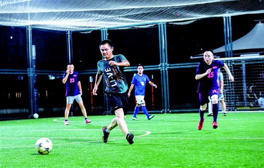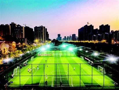 21日晚,洪山区团结大道铁机盛世家园足球场内,两支业余球队正在比拼切磋。其中一支球队是铁机盛世家园小区居民组成的队伍,另一支的成员也大都住在附近。“足球场建成后,几乎每天爆满。”该球场工作人员介绍,球场用地以前是铁机村集体用地,空置多年。两个月前,铁机村把城中村改造与居民踢球健身需求相结合,拆除原来的临时性餐饮设施,建设2片五人制足球场,可拼成一块九人制场地,并配套了停车场。铁机村的居民来踢球,实施免费政策,对外则收取一定的费用用于维护设施和电费开支。“这个场地很走俏,我们每周四来这里踢一场,很过瘾。”球友肖先生告诉记者,社区足球场建成后方便了大家踢球,队友的出勤率大幅增加,减少了去打麻将、宵夜的次数,养成了健康的生活方式。