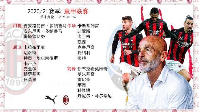 直播吧1月23日讯 北京时间1月24日凌晨1:00,意甲第19轮,AC米兰主场迎战亚特兰大。米兰公布了本场比赛的大名单,伊布领衔,新援托莫里、曼朱基奇入选,特奥、克鲁尼奇、雷比奇复出。
