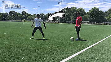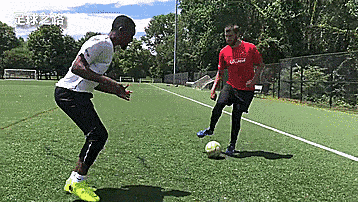 我们不需要完全击败他,我们在后场不需要过人,我们只需要一点点空间,把球传给队友即可,变化很多,越简单越好,像下面这样,也可以回拉回拉,然后突然切球。