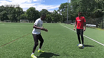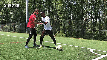 这时我们看不到身后,肯定不能开始杂耍,我们只需要一个简单的动作,首先要确保不能丢了位置,将身体置于对手和球之间,把他隔开,除非犯规,否则很难把球抢走。