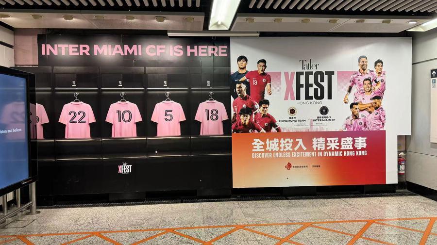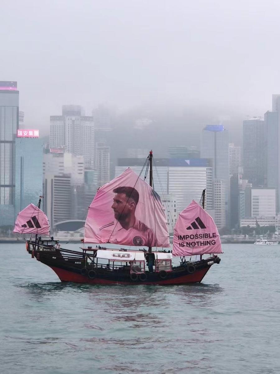 走出酒店坐上港铁进入市区,叶明感受到全港的梅西热:港铁站内随处可见印有迈阿密国际队粉红色球衣的宣传照;港岛铜锣湾崇光百货外墙的大型广告板,换上了比赛的电子宣传海报;穿梭在维多利亚港两岸的观光帆船“鸭灵”号,换上了印有梅西半身照的粉红色主帆,变身“梅西”号畅游维港。