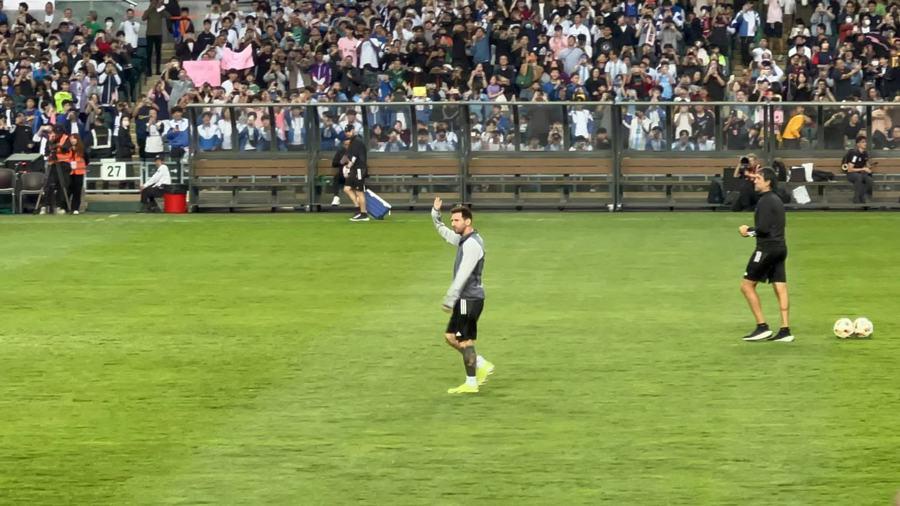 2月3日下午,球队在大球场进行公开训练。开始前三小时,球迷已入场。全场座无虚席,人们穿着醒目的粉红色队服,一眼望去是无数的10号球衣。叶明在现场发现,只要梅西触球,场边就会传来欢呼声。 “球员与球迷互动很积极,当时所有人都在期待第二天的正式比赛”。