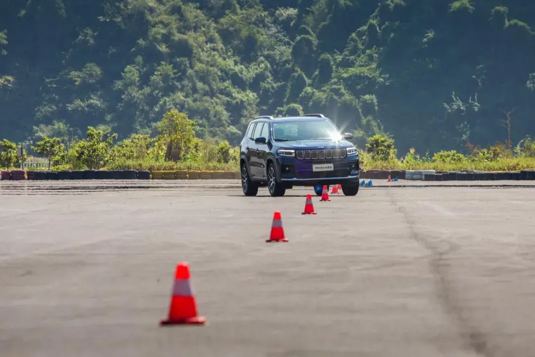 如果你了解Jeep,那么一定能够猜到这些,但接下来的情况就未必了。这次试驾活动特别安排了绕桩和麋鹿测试,看起来厂家就是对新大指挥官在铺装路面上的操控表现也充满了信心。鉴于在之前的驾驶中感受到不错的减震舒适性,我以为它在绕桩时的姿态不会很稳定,谁知一旦上手,这辆车的侧倾并不明显,可控性相当强,完全不像是一辆侧重于越野的车。