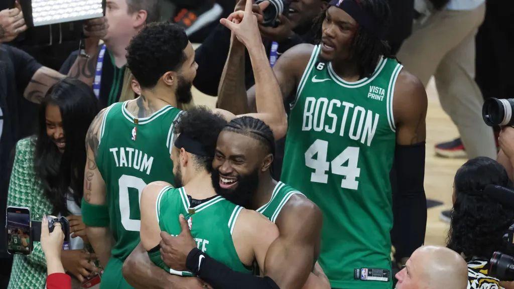 “德里克·怀特,我的天,他就像一道闪电一样,不知道从哪里蹿了出来,”东决第六场赛后,杰伦·布朗在新闻发布会上谈起队友怀特的补篮绝杀时,情绪依然相当浓烈,言谈举止间都透露着劫后余生的快乐,“是怀特,是他拯救了我们的这一天。”