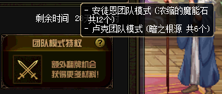 团队模式特权体现在安图恩团队和卢克团队,安图恩特权翻牌时会比普通玩家多12个浓缩的魔能石材料,卢克团队模式会比普通玩家多6个暗之根源。对于小号党玩家来说是一种额外获得材料的机会。