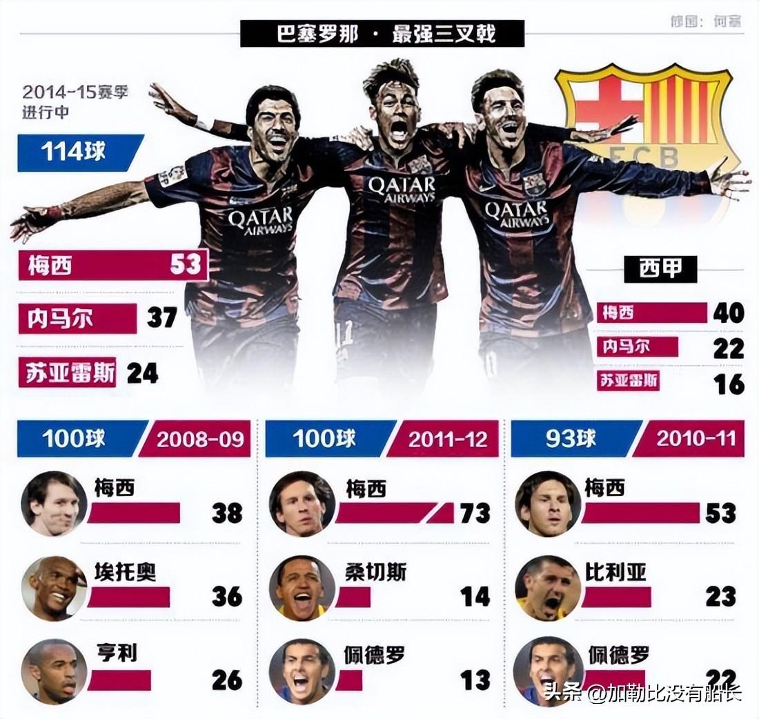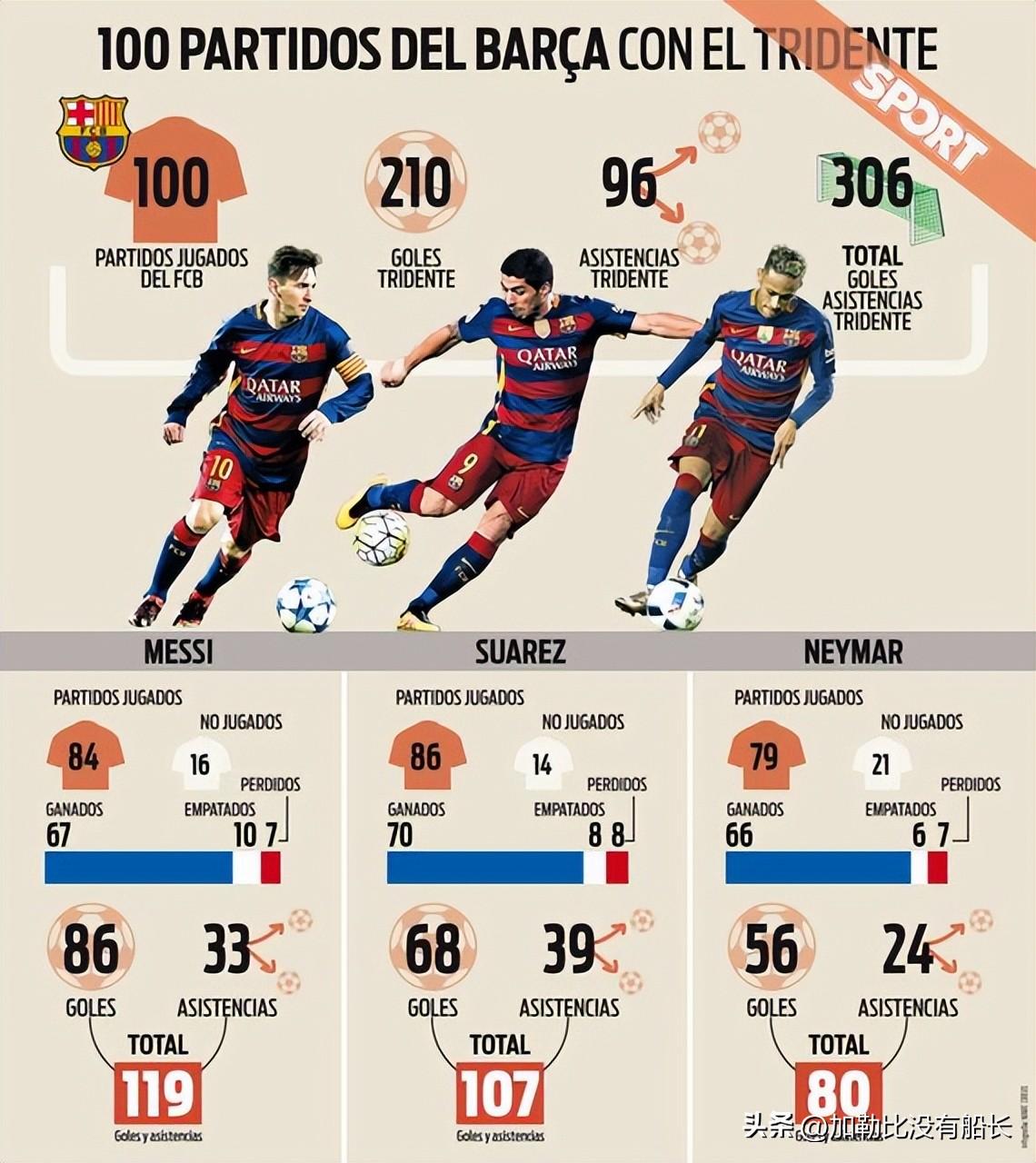 三人5年总计斩获338粒进球送出137次助攻同时也终结了球队30年顶级联赛的冠军荒