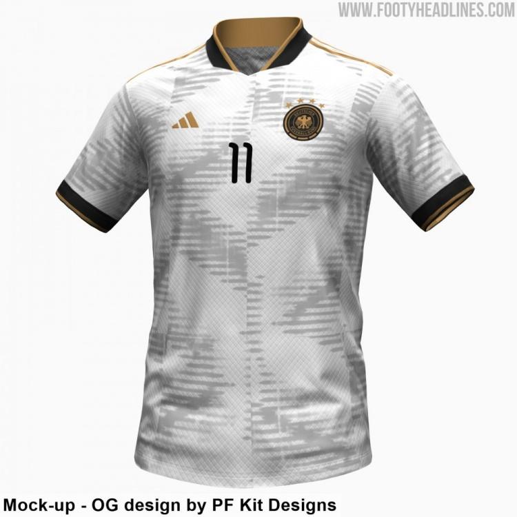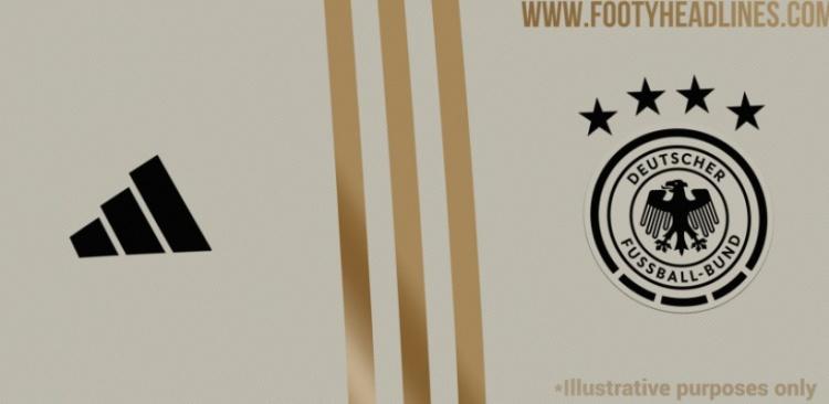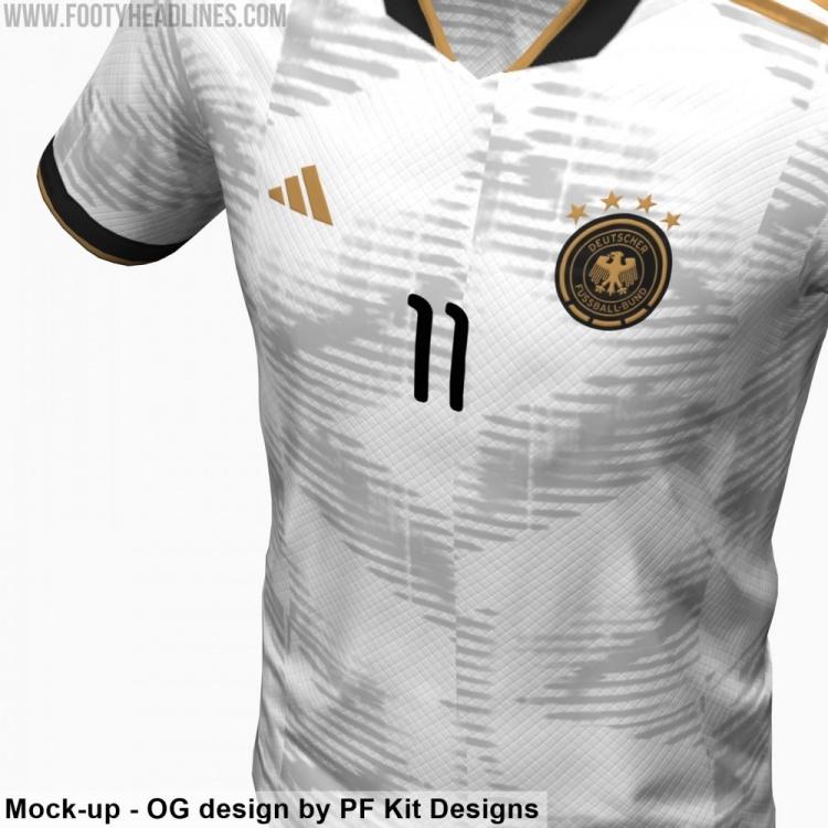 直播吧2月9日讯 Footy Headlines曝光了2022世界杯的德国队主场球衣的可能设计方案,该球衣参照了90年代德国队球衣的特点。