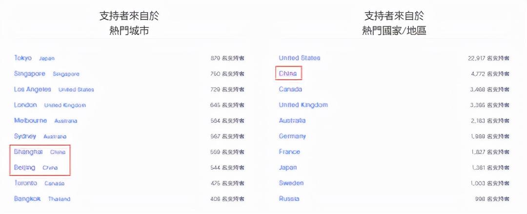 公告中阴阳怪气地表示中国大陆玩家为开发商贡献的收入为0,因此不会出简体中文。小弟看到这里也蚌埠住了,你这游戏都没在中国大陆发售玩家怎么买的游戏你还不清楚吗?况且两年前众筹游戏开发经费时,众筹榜上中国的各大城市也赫赫在列: