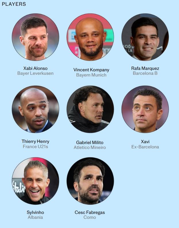 在其他地方,马克斯负责巴萨B队,亨利执教法国U21和U23国家队,而西尔维尼奥则带领阿尔巴尼亚国家队。加布里埃尔-米利托执掌米内罗竞技,法布雷加斯在科莫展现出教练潜力。