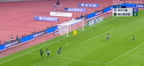 第20分钟,奥乌苏传中,莱昂纳多不停球抽射破门,浙江1-0三镇
