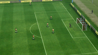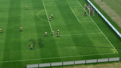 2、接下来就是关键了,这时候最好球员是对应的逆足球员,右路用左脚,左路用右脚。立刻接两下长传(D)或者三下,两下是低平高球,三下是贴地急速,我推荐两下,因为一般地面会有人切断传球当然如果前点(最是离你最近的立柱那一块)只有你的前锋那就果断3下,接球后立刻射门;