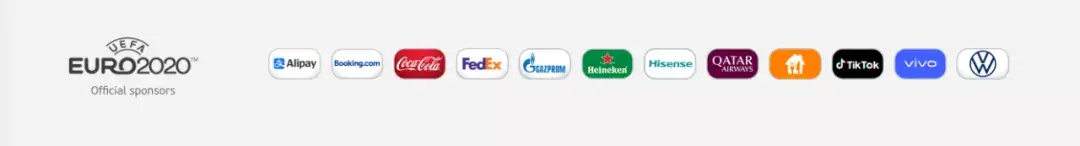 据欧足联官网显示,2020欧洲杯共有12家官方赞助商,其中中国企业占据了1/3,分别是支付宝、海信、Tik Tok和vivo,组成了欧洲杯历史上最庞大中国赞助的矩阵。