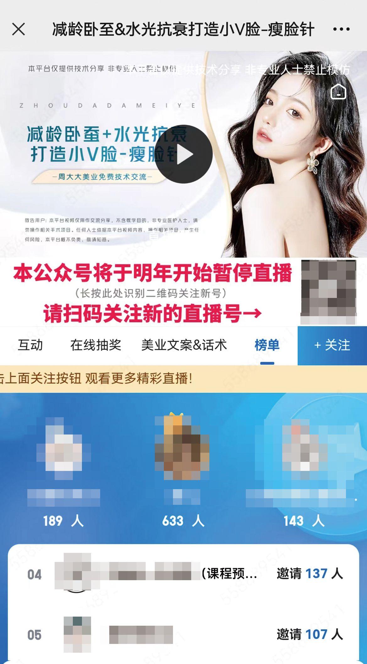 察觉记者有购买意向,一天晚上8点半,销售分享了直播链接让“先观摩观摩”。记者输入验证码后便进入一个私密的直播间,当日主题为“括号纹消失术&溶富贵包&骨相立体眉弓”。