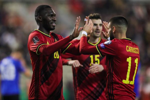 直播吧11月14日讯 北京时间11月14日凌晨3时45分,2022世界杯欧洲区预选赛E组第9轮展开角逐,比利时坐镇主场迎战爱沙尼亚。上半场,本特克破门首开纪录。比利时半场1-0领先爱沙尼亚。下半场,卡拉斯科世界波远射破门,索尔加扳回一城,替补登场的小阿扎尔打进一球。最终比利时3-1击败爱沙尼亚。本轮战罢,比利时提前一轮锁定小组头名,晋级至2022世界杯决赛圈。