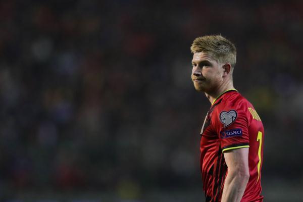 ↑比利时队球员德布劳内在比赛中。