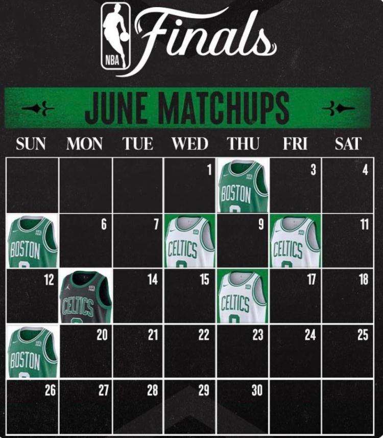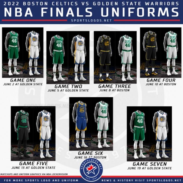 直播吧6月2日讯 有凯尔特人博主晒出总决赛各场比赛绿军将会上身的球衣版本。