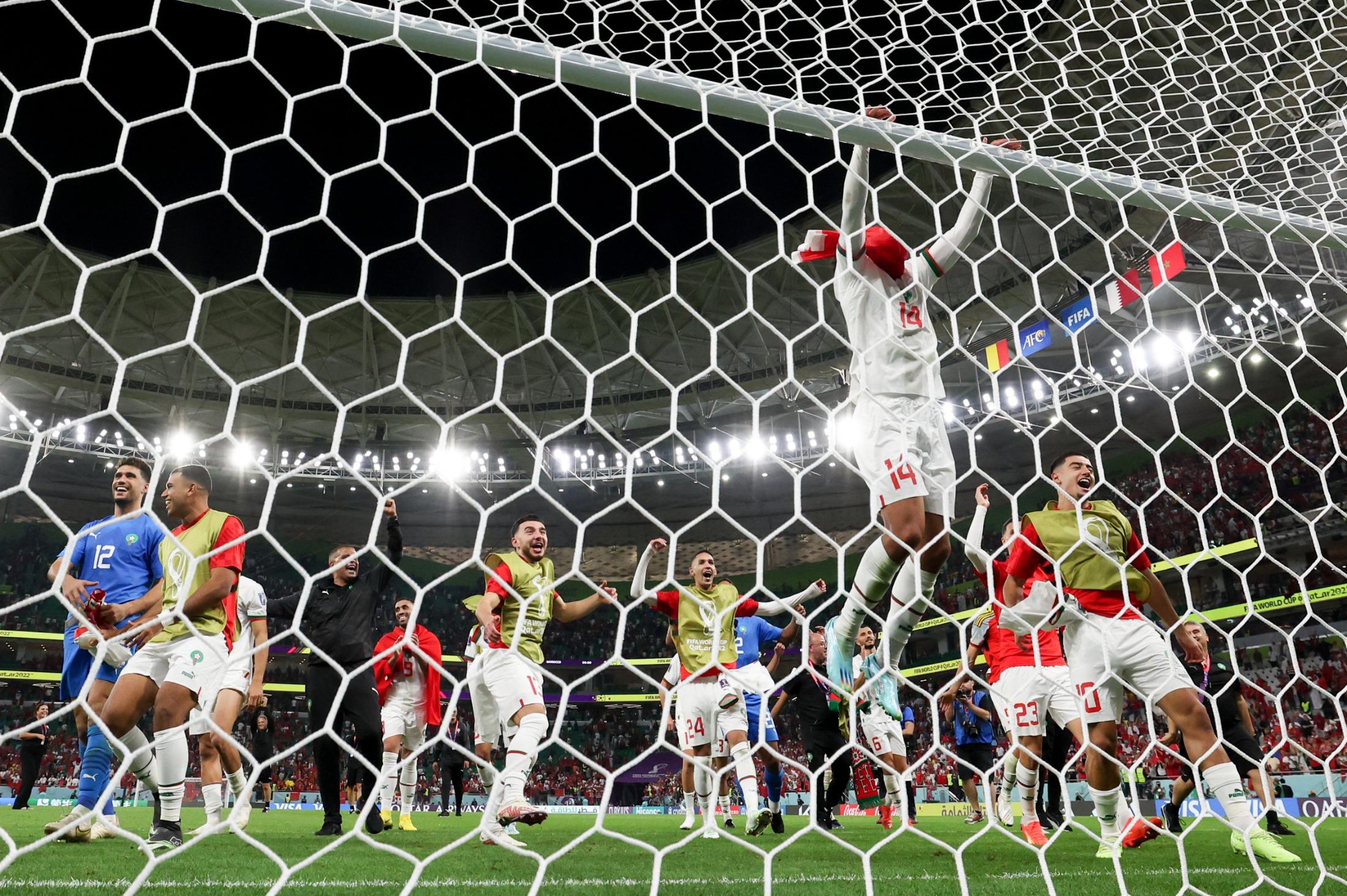 11月27日,摩洛哥队赛后庆祝。新华社记者郑焕松摄