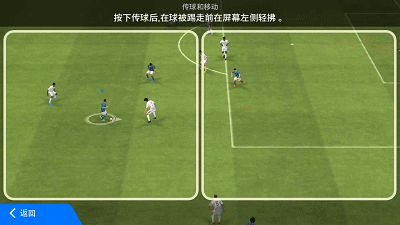 二过一操作:按下传球后,在球被踢走之前在屏幕左侧轻浮。