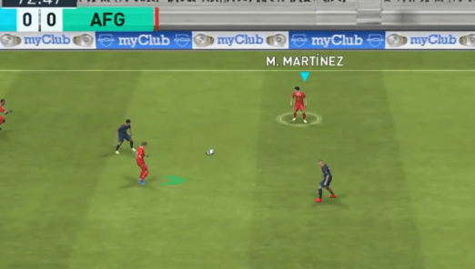 以上是官方的教程gif,换句通俗易懂的话,就是在你传球的同时,左手朝进攻方向轻佛一下,传球的球员就会向进攻方向插上,效果如下:
