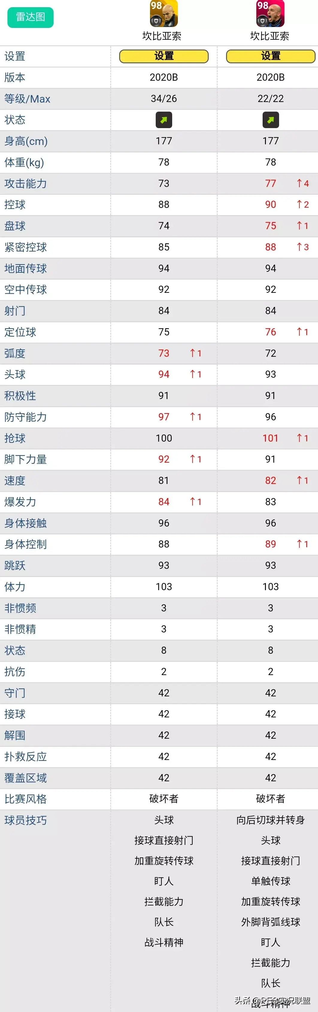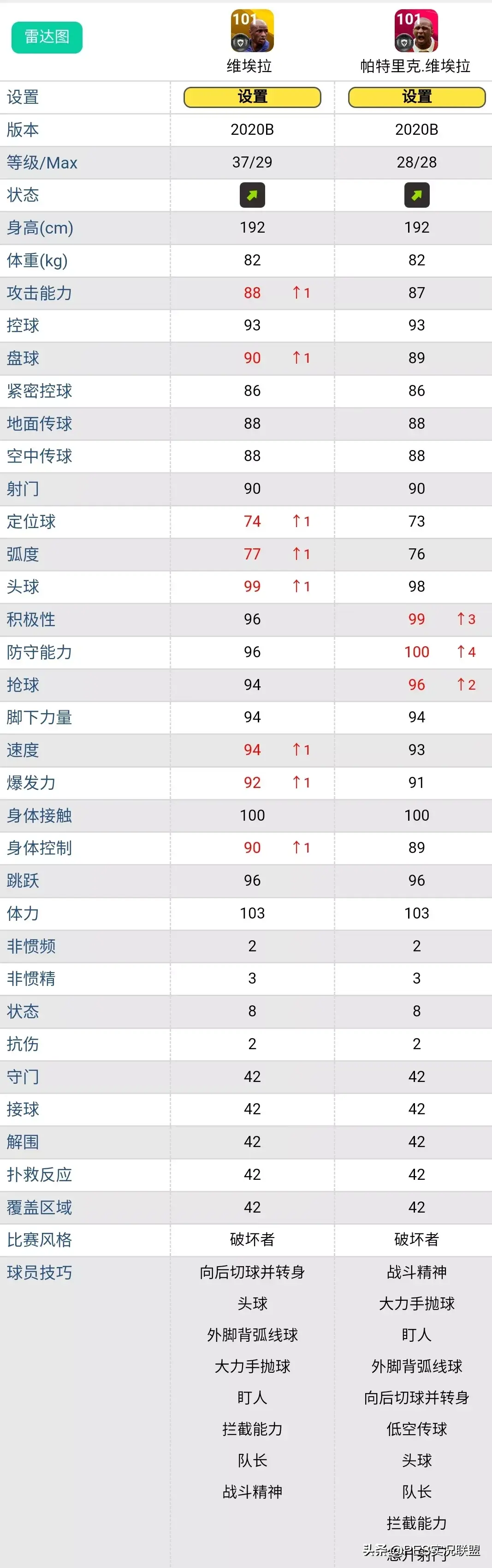 球员简述:黄传维埃拉是当前版本独一档的后腰神兽,在国服中拥有极高的人气,几乎铁定不会按最低的8级突破标准来,否则像上面对比图中所显示的那样,当初玩家大量氪金的黄传,突破8级还是比不上时刻卡维埃拉,肯定会集体退游。