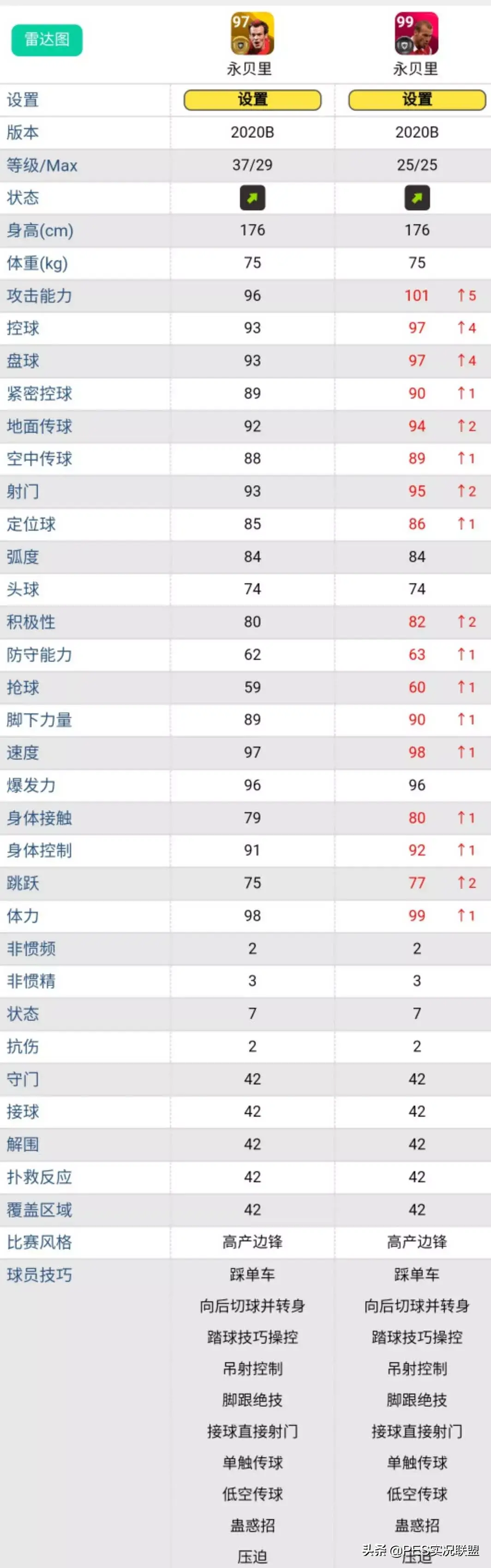(4)时刻球员展示的是满级↗状态下的属性,不包含队壳加成(国服全属性+1);