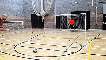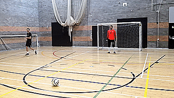 在五人制比赛中,10米的点球允许守门员出线,只要他们在离球5米的范围内,这种技术利用了守门的基本原理,它可以缩小射门的角度。