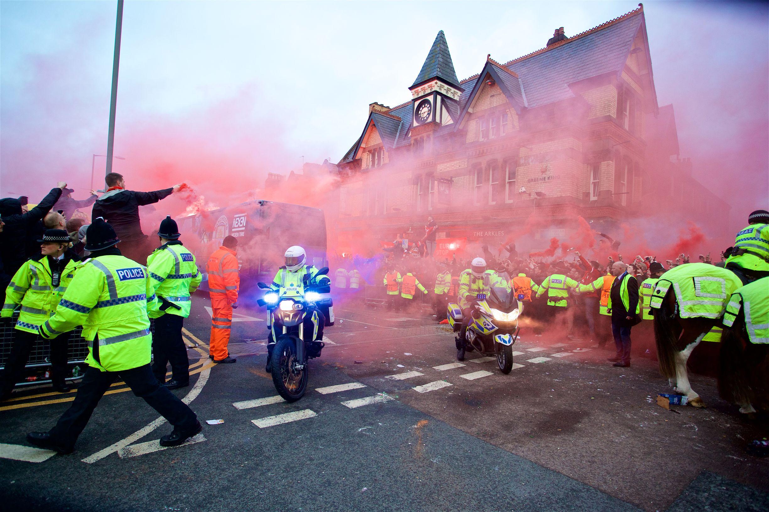 4月4日,利物浦队球迷欢迎球队大巴抵达。