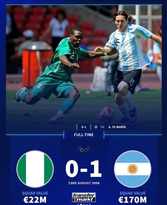 2008年北京奥运会:梅西送出直塞,助攻迪马利亚单刀破门,阿根廷1-0尼日利亚