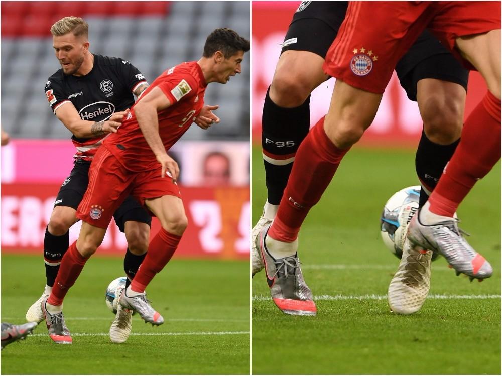 拜仁慕尼黑在本轮联赛中主场5比0横扫杜塞尔多夫,拜仁前锋莱万多夫斯基上演梅开二度的好戏,这位波兰前锋本赛季已经在各项赛事中为拜仁攻入43球,追平了他的单赛季个人进球纪录。本场比赛,莱万多夫斯基上脚了耐克全新“Neighbourhood Pack”套装中的Phantom VNM Elite足球鞋。
